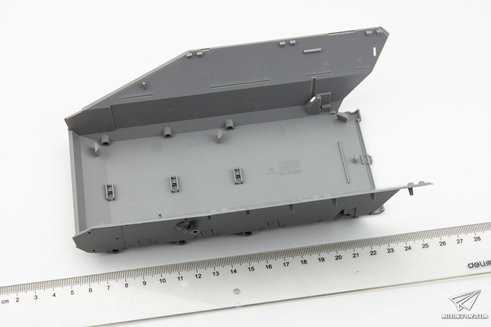 上世纪70年代,西德军方认为在未来的战争中,空降部队很可能会与敌军(苏军和东德)的主战坦克遭遇,因此提出了研发一型能够攻击敌方主战坦克的轻型空降装甲车,且要求能够用北约的普通运输机运载并空投,也就是说车体尺寸要尽量的小,最后由保时捷公司承接了新型空降装甲车的研发任务。1975年,保时捷公司已经试制出了几种设计略有不同的空降装甲车原型车,但到了1978年,西德军队因为经费不足停止了这一项目。但是保时捷觉得此时放弃实在有些可惜,就自筹资金继续发展,准备寻求其他国家军队的外贸订单。然而,到了1980年,西德军方的战略战术再次发生改变,又决定采购新型空降战车了,保时捷公司便很快拿出来了适合军方需求的设计,军方随即正式装备,并按照德国装甲车辆命名传统,称其为“鼬鼠(Wiesel)”。鼬鼠装甲车被公认为是世界上最小的装甲车,其最轻的型号总重只有2.75吨,长3.46米,高1.8米,宽1.82米。最重的型号也只有4.78吨重,但如果你把它认为是只是一个单兵作战的载具,那就大错特错了。它可以加装7.62mm和12.7mm机枪、反坦克导弹、20mm机炮、防空导弹、防空雷达、120mm迫击炮等等,扩展的空间很大。 不同于高大的PZH200,也不同于迅捷的豹2,鼬鼠装甲车给人的印象只有一个字:萌。这款精致小巧的装甲车是现代德军庄家阵营中的一员,多次亲历战场执行任务,在实战中证明了自己的价值,是现今“小车扛大炮”的最极致的代表。这个题材利华(REVELL)和AFVCLUB曾经推出过1/35比例的套件,但是对于体积如此小巧的装甲车,1/35比例做出来跟一辆1/72比例的主战坦克差不多大小,不管是细节的表现力还是制作的难度都不能让人满意。三花最近几年开始推出了一些1/16比例的小型坦克的套件,比如之前推出过的一号坦克,受到了市场上的欢迎,如今这款1/16比例的貂鼠表现如何呢? ▼ 套件为三花惯用的灰色PS塑料,配有蚀刻片,活动悬挂和活动履带。因为是1/16比例,所以车体比想象的要大不少,目测比虎王坦克都要大一圈。