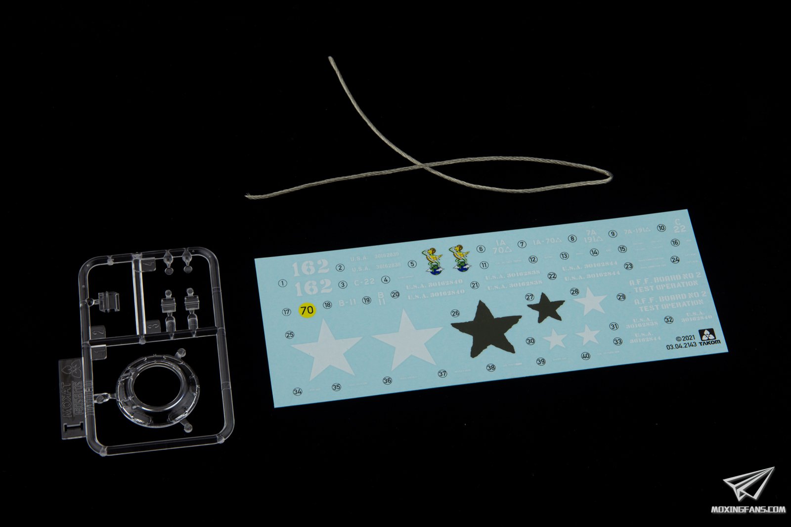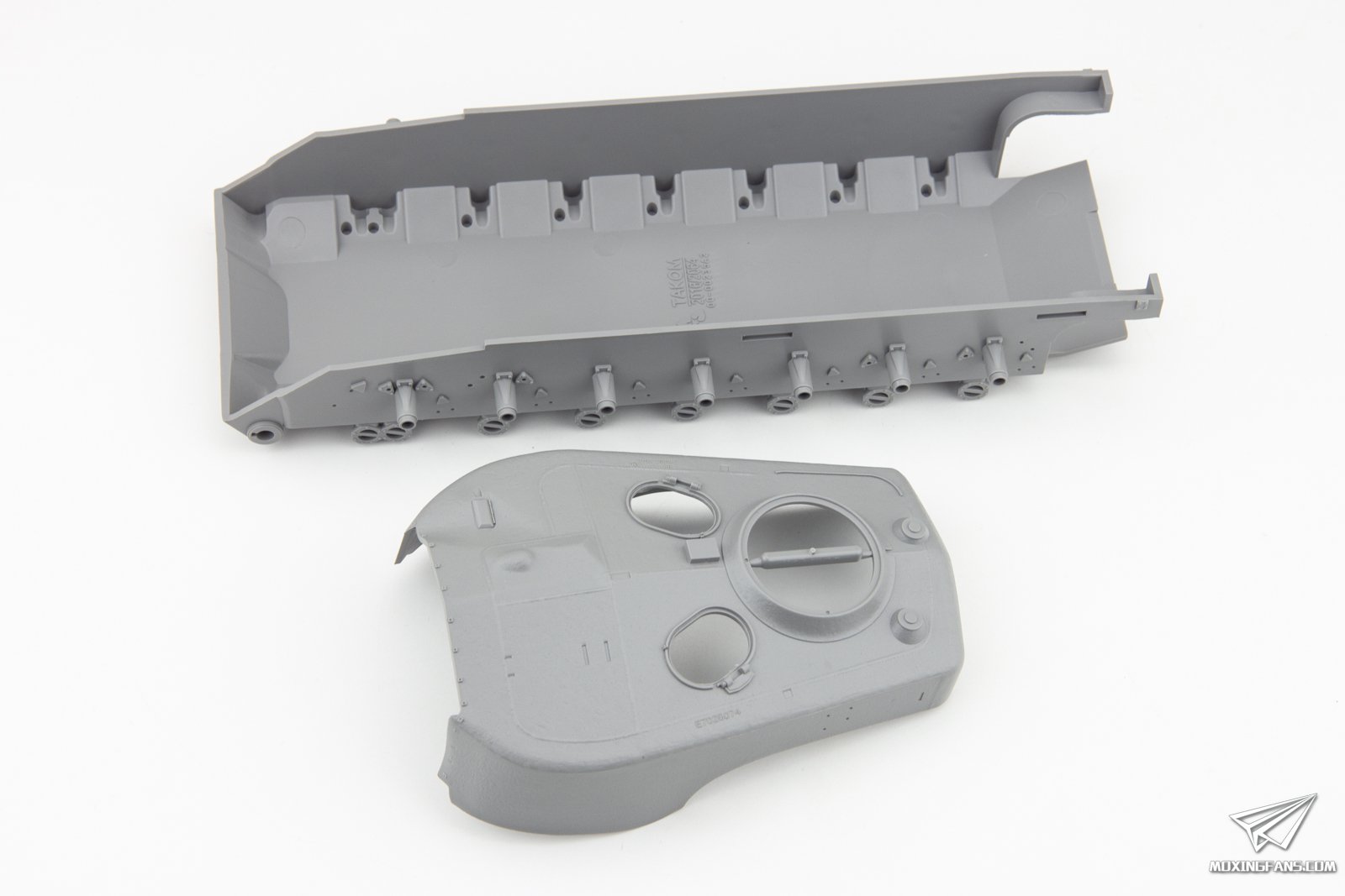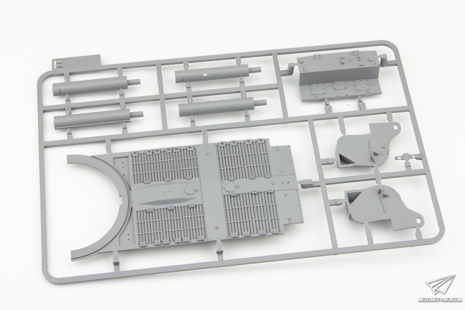 T29 重型坦克是二战末期美国面对德国虎王坦克的威胁而研发出来的一款重型坦克,战斗全重约70吨,在火力与防护上与虎王坦克相当,由普雷斯特钢铁车辆公司制造。T29和M26共用大量零部件,使用105mm高射速火炮,大型铸造炮塔,为了降低地面压强采用了8对负重轮。然而经过军方测试,T29已经不适合当时的战场情况,最终只生产了8辆样车,并未批量化生产。 小编对T29的印象相当深刻,多年前在WOT中第一次认识了这辆7级的大头怪兽,利用大坡小坡各种花式卖头把我的虎式抽的不能自理。T29这个题材之前很少有厂商涉及,2017年三花推出了全新开模的T29E3和T30/34,现在没有耳朵的T29也来了,下面我们一起来看下这款套件开模如何。 ▼ 板件跟之前推出的T29E3非常接近,只有M板为全新开模,其余部分都是之前推出的板件,配有半拼接履带。