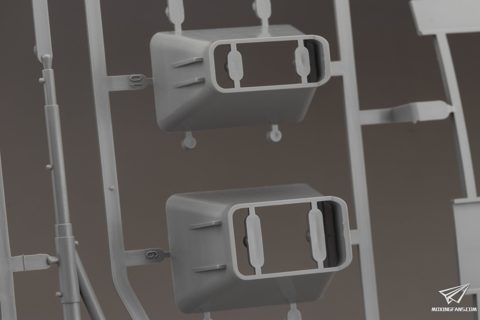 ▼ 炮塔顶部和侧面的测距仪等附件的细节,套件并未提供透明件有些遗憾,毕竟比例放在这里了,有透明件的话表现力会更强。这部分零件大都采用了隐藏水口的设计,制作起来更加轻松。