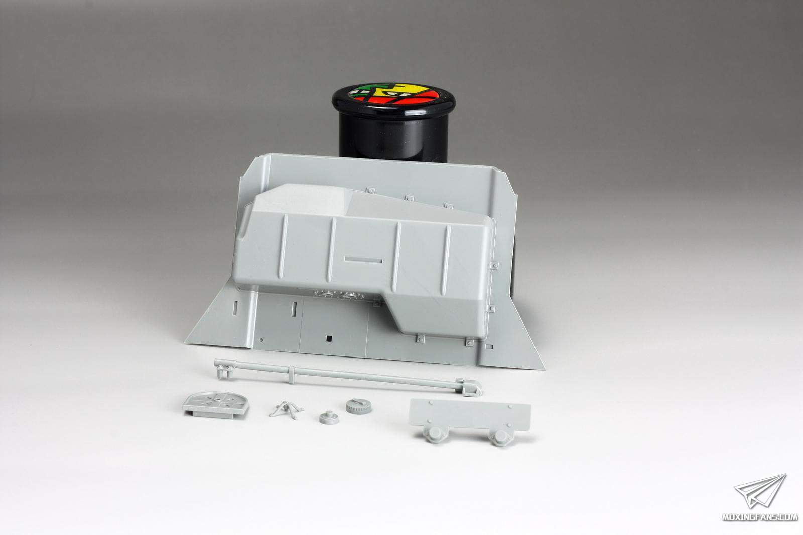 车尾部装甲板的组合,这个凸起来的部分应该是油箱,零件并不多,打磨好水口和合模线,检查下有木有缩胶的地方,然后再粘接组合。