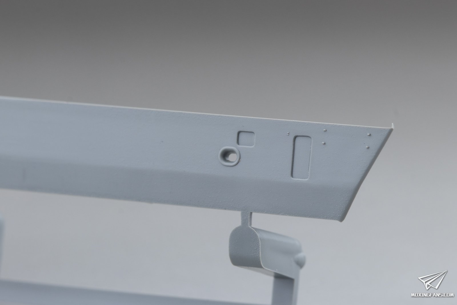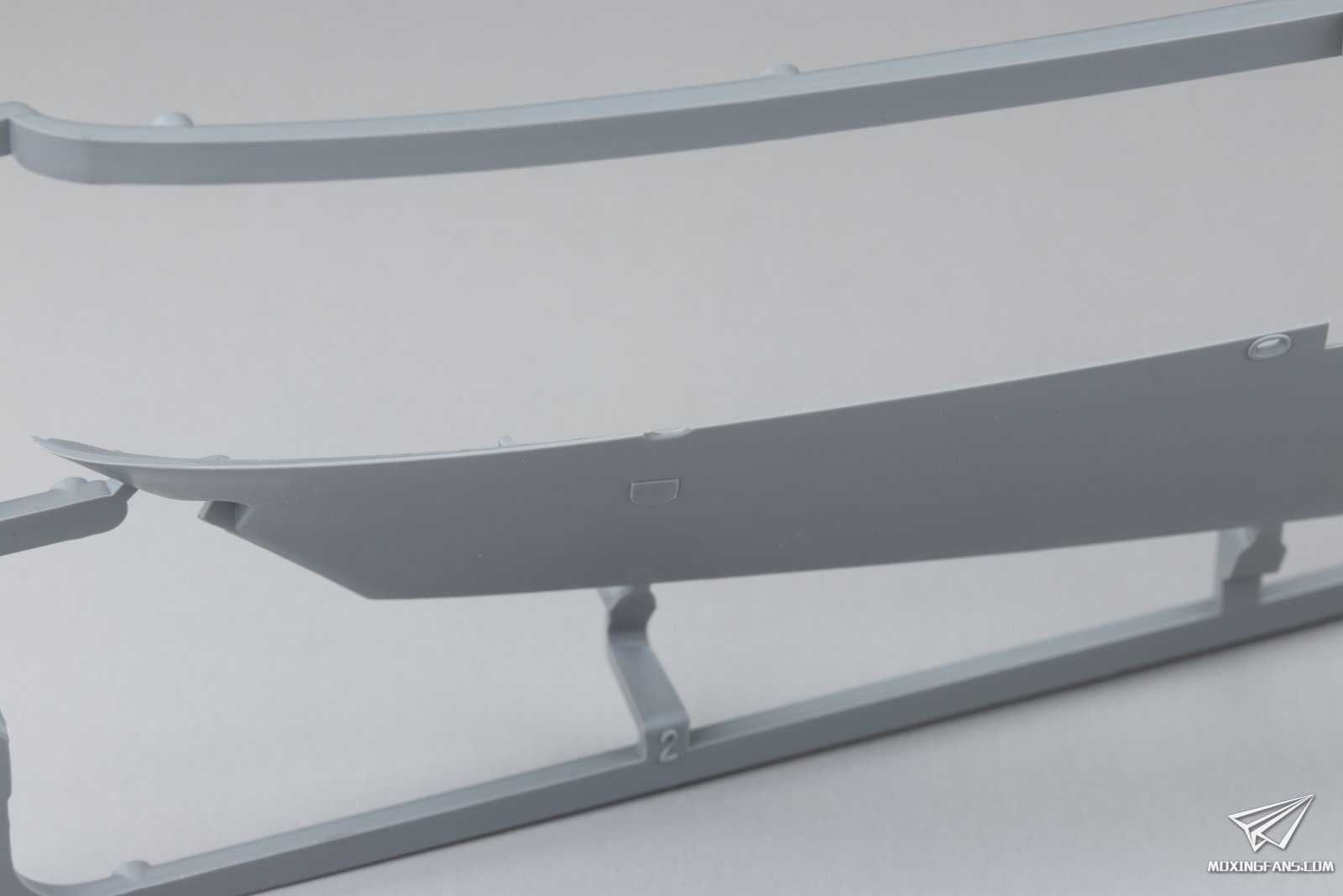 ▼ 水线以上的舰体为传统的两片式开模,开出了前部的外飘细节,舰体表面的消磁电路细节均有所体现。