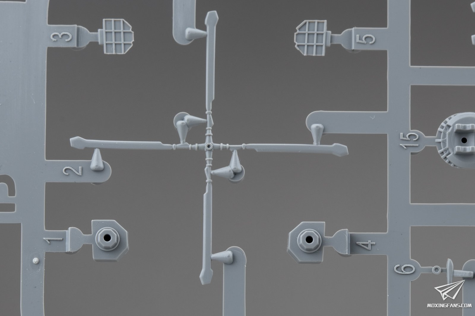 ▼ 其他包括主炮、鱼叉反舰导弹、小艇以及直升机等部件的细节。主炮并未开出炮口,直升机为透明件,旋翼提供了展开状态和折叠状态可选。