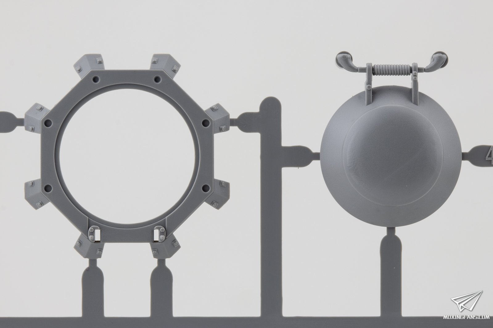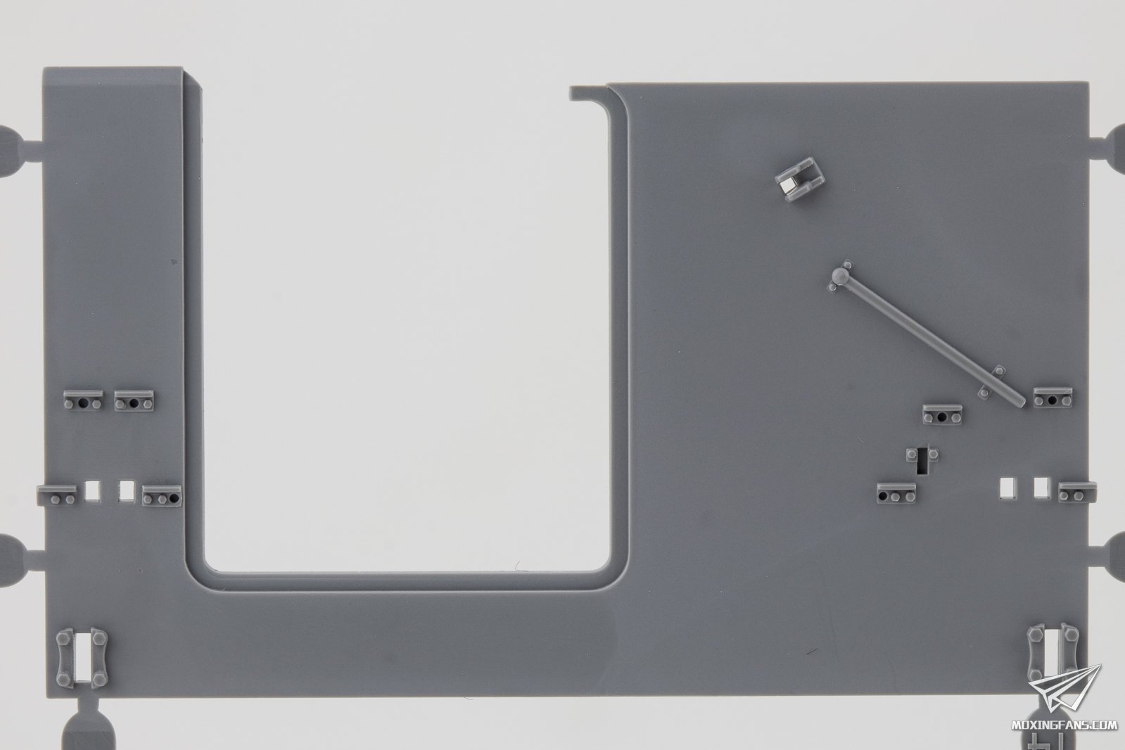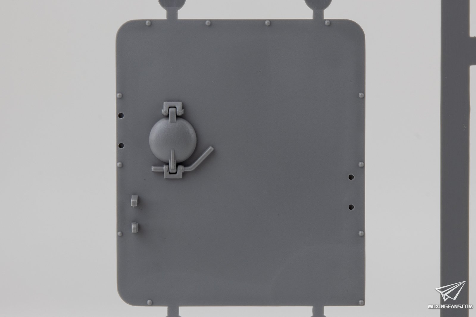▼ 上车体的一体化程度较高,发动机位置的格栅为单独开模,格栅开模较为锐利。虽然这盒套件并未开出内构,但是却提供了一些内部舱室的隔板,在起到支撑作用的同时打开舱门也不至于一眼假。