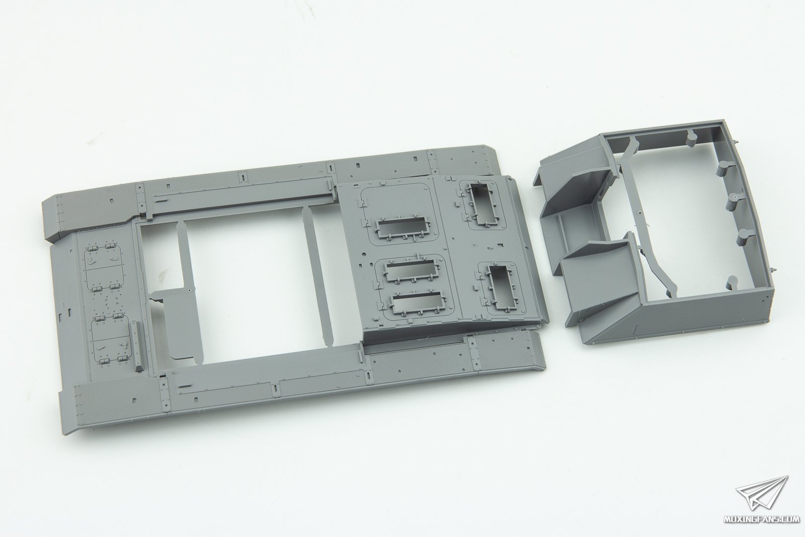 ▼ 小编才疏学浅,见识过伪装豹,但是伪装M7还是第一次见。三花的这款伪装M7基于三花自家的三突G后期型(8006)打造,在其基础上新开了伪装装甲G板,配基础蚀刻片、半拼接履带和铜质钢缆。