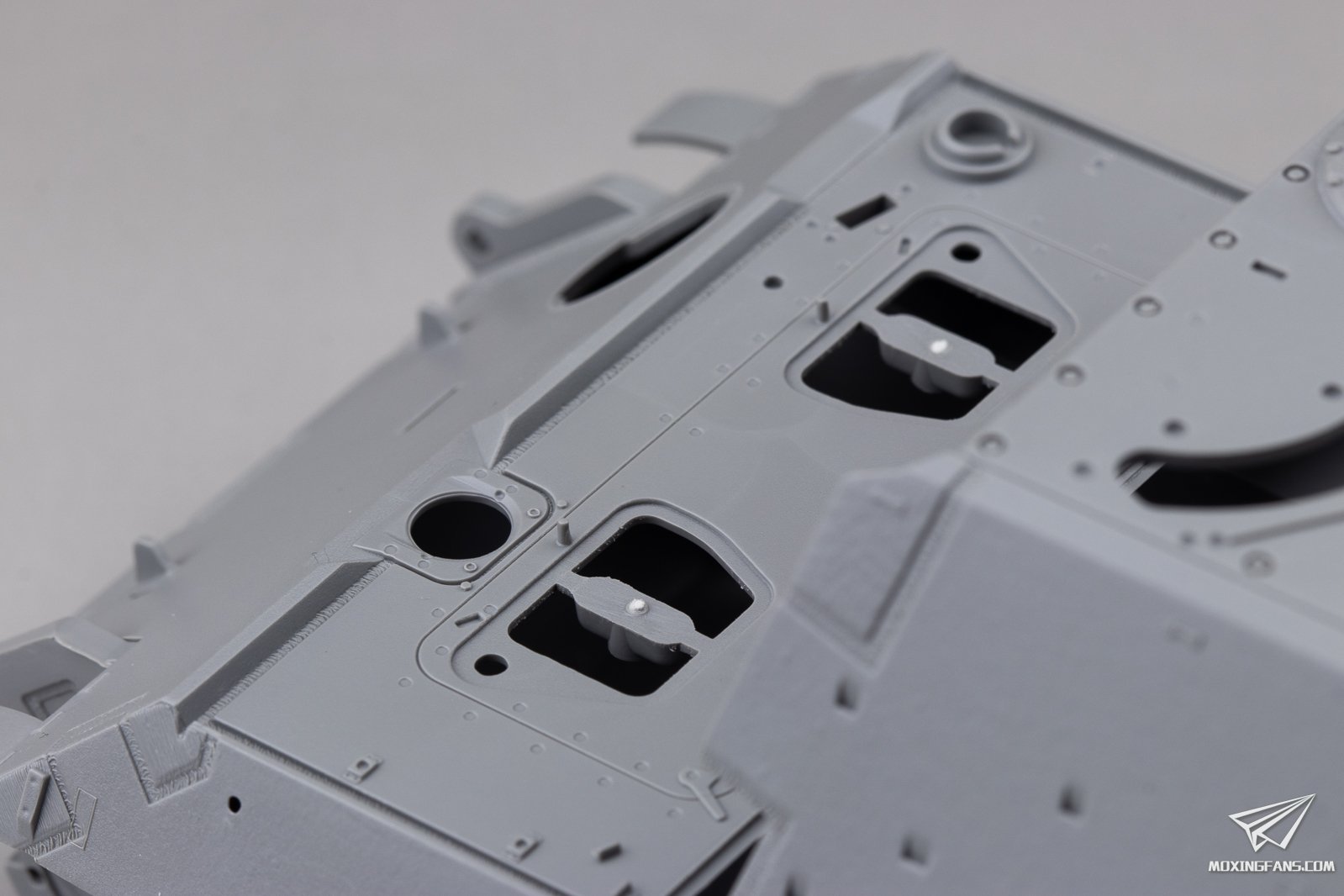 ▼ 下车体为一体式开模,细节表现较为锐利,焊线和切割痕较为丰富。