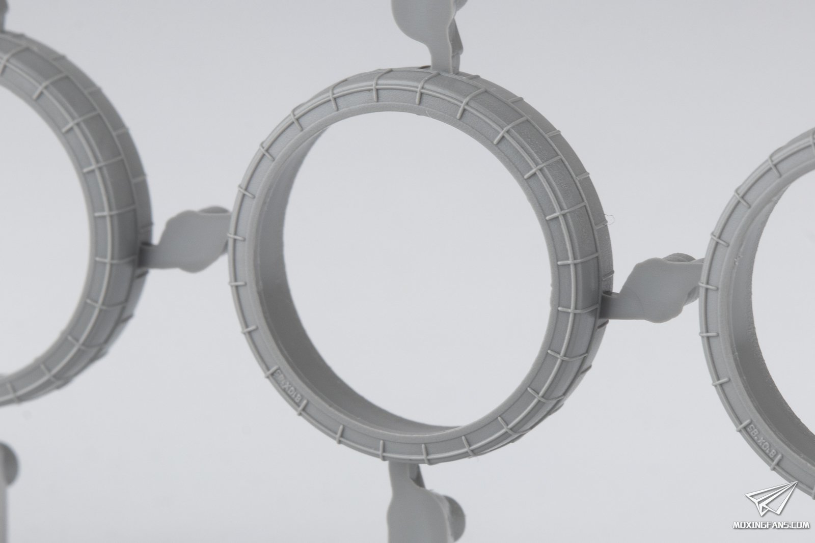 ▼ 负重轮橡胶圈部分为单独开模,上色更加方便一些,表面开出了真实胶圈的合模线,但是水口的位置略显尴尬,处理时要小心。
