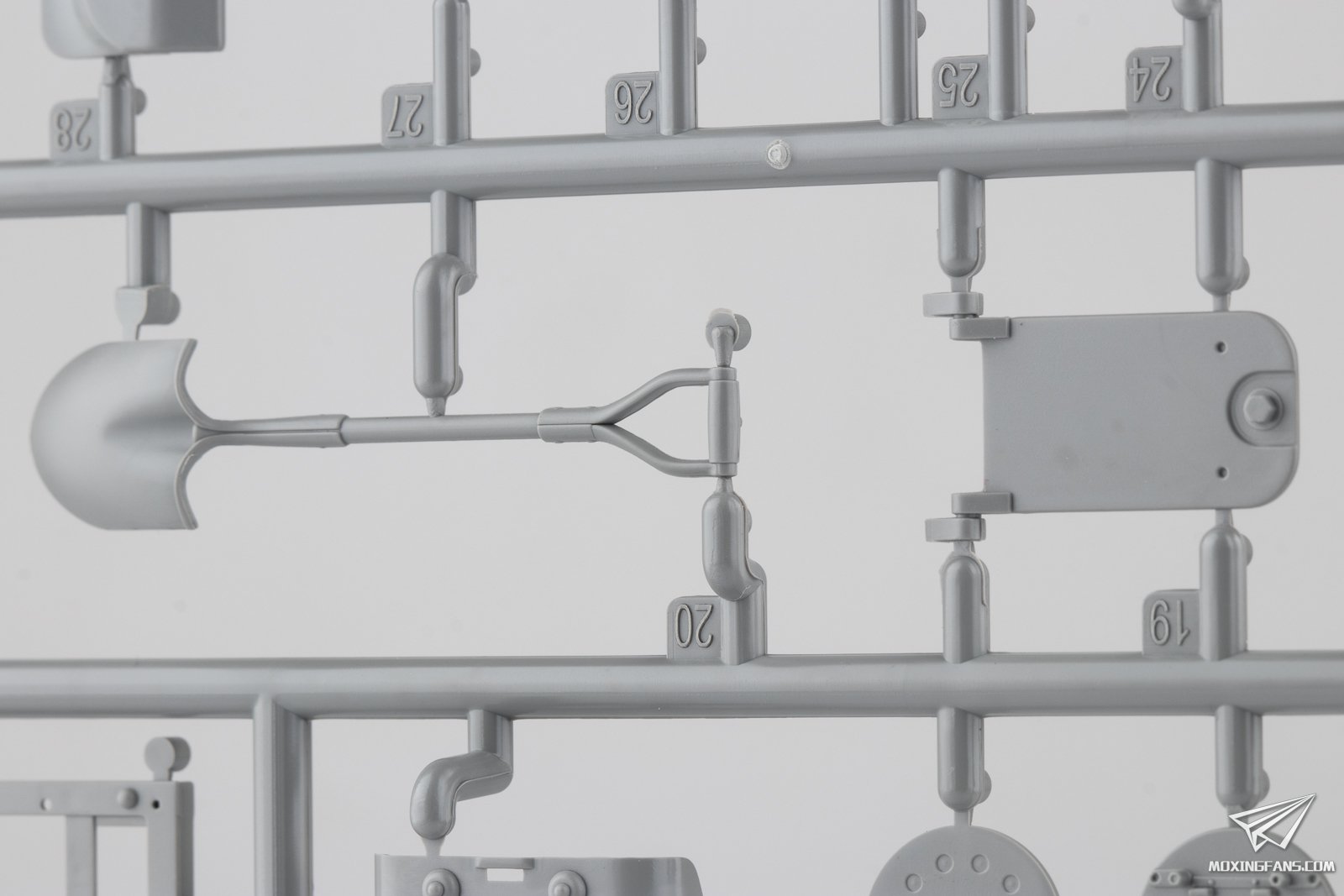 总结如下: 题材选择(满分5分,越高越热):4分 M50这个题材属于偏冷门的题材,之前推出这个题材的厂家少之又少,而推出1/16比例的套件还是第一次见。虽然并不是热门车,但是毕竟也是参与过越战的车辆,对这辆车的平价 开盒细节(满分5分,越高越好):4分 借助大比例的优势,这款M50A1的细节相对常见的35比例更加出色,各种铸造编号和螺栓的细节表现非常锐利,滑块开模的零件数量也不少,而且零件的体积也不小,无需跟小零件大眼瞪小眼,制作难度并不大,对新手来说较为友好。 配置情况(满分5分,越高越好):4分 作为大比例套件,超大体积和超大零件带来的震撼是小比例无法给予的,这盒套件配有1张的蚀刻片和软胶履带,结合不含发动机在内的半内构,性价比算是及格。