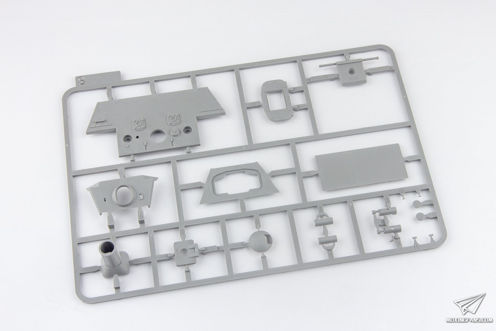 虎王坦克是德系坦克中的明星型号,很多厂家都曾经推出过这个题材的套件,市面上可选的套件非常丰富,但是其中有一款虎王非常特殊,那就是安装有105mm主炮的保时捷炮塔虎王,也就是曾经出现在WOT前线模式中的虎王FL。虽然这款虎王是YY型号,现实中并不存在,但是人气却不低,下面我们就一起来看一下三花推出的这款105mm主炮保时捷虎王表现如何。 ▼ 这盒套件基础零件来自于三花2019年推出的保时捷虎王,具备105虎王特征的C板和J板为新增零件,附带半拼接履带,蚀刻片,铝合金炮管和履带辅助工具,可以制作成标准88mm主炮的保时捷虎王或者装备有105主炮的保时捷虎王。
