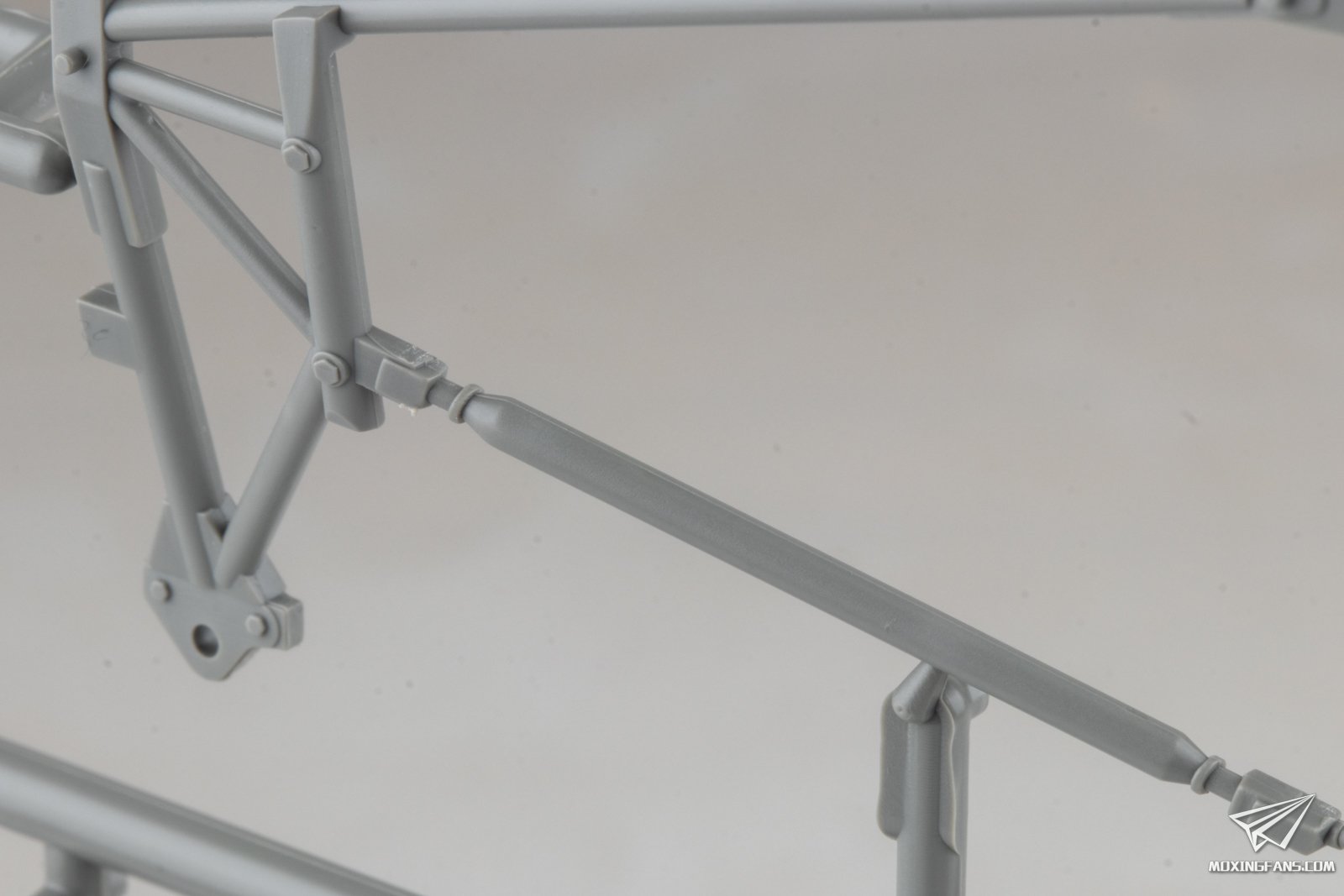▼ 机身内构的各种管线和框架的细节,主框架都是一体式开模,免去了拼装的麻烦。因为大部分框架的结合面为圆形,所以合模线需要注意,好在这部分的合模线处于可接受的范围内。