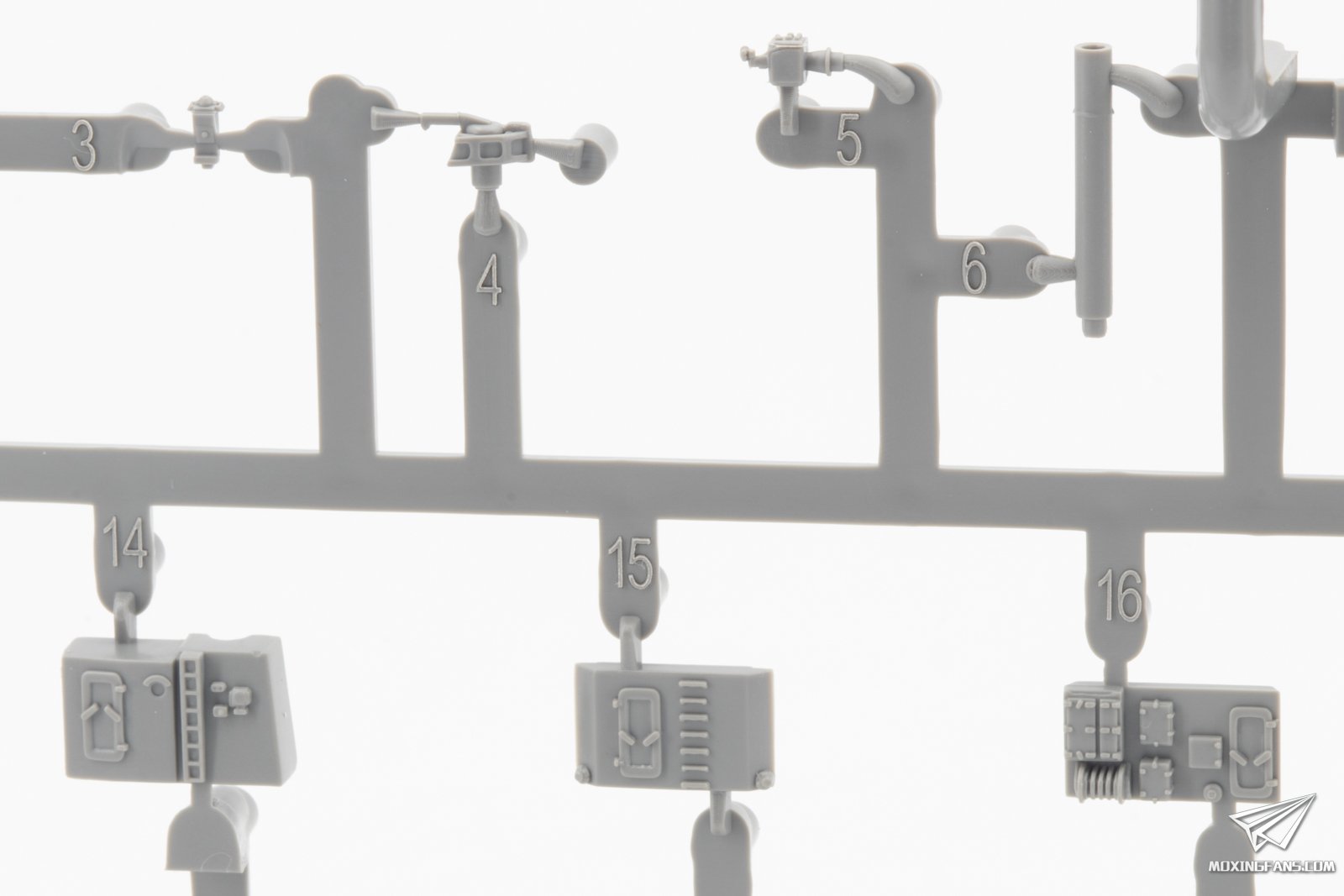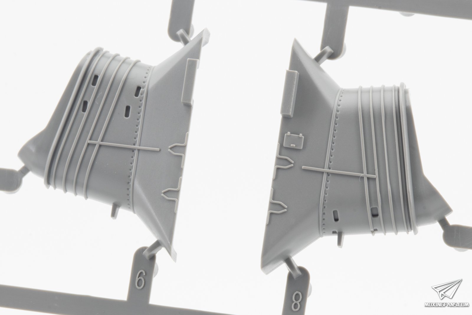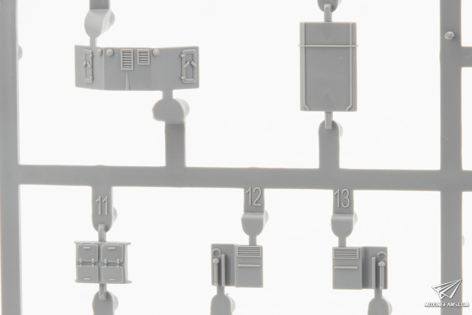 ▼ 烟囱和上层建筑部分,这部分零件都是传统的多片式开模,需要大量的无缝处理,比较繁琐。