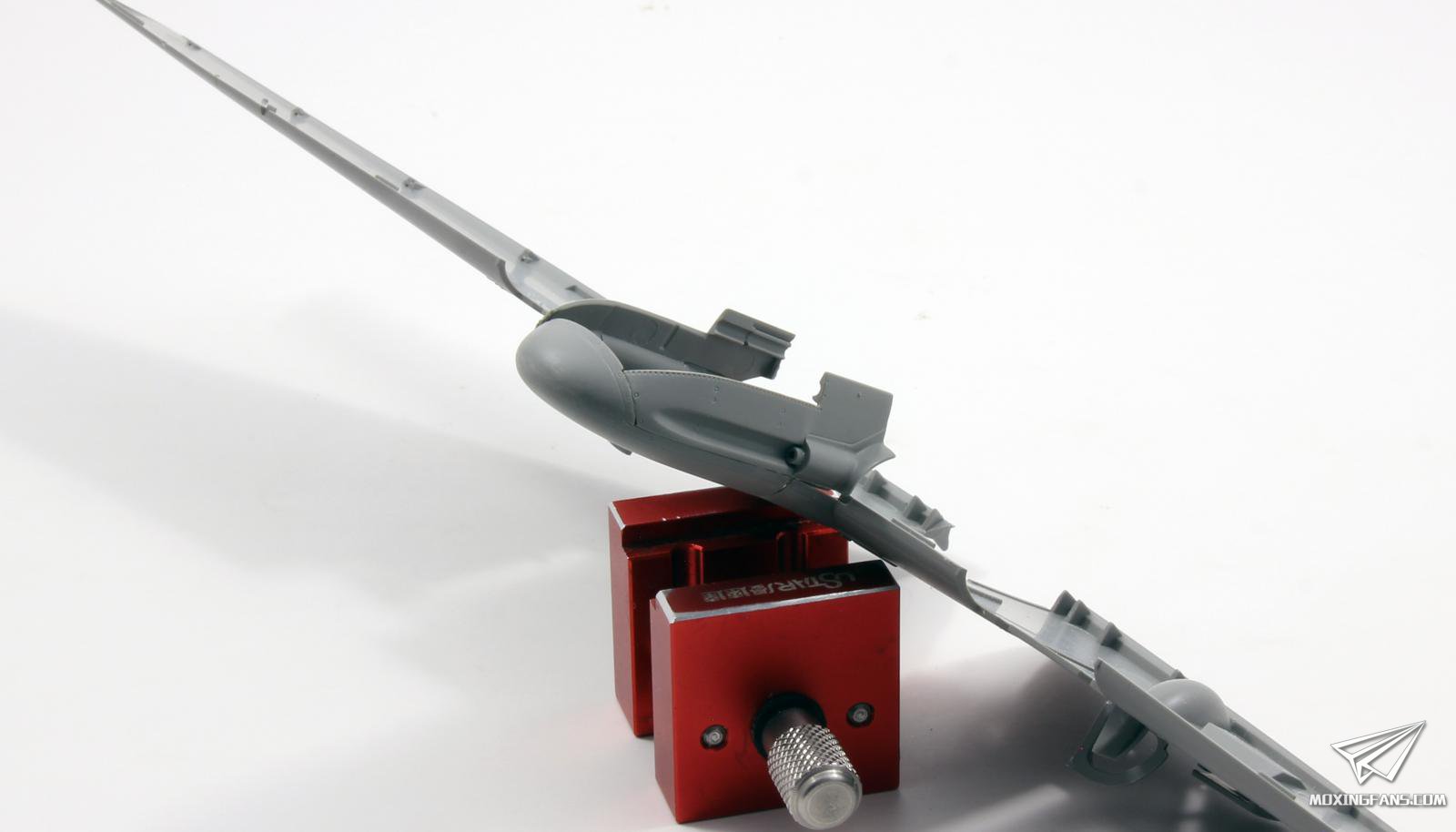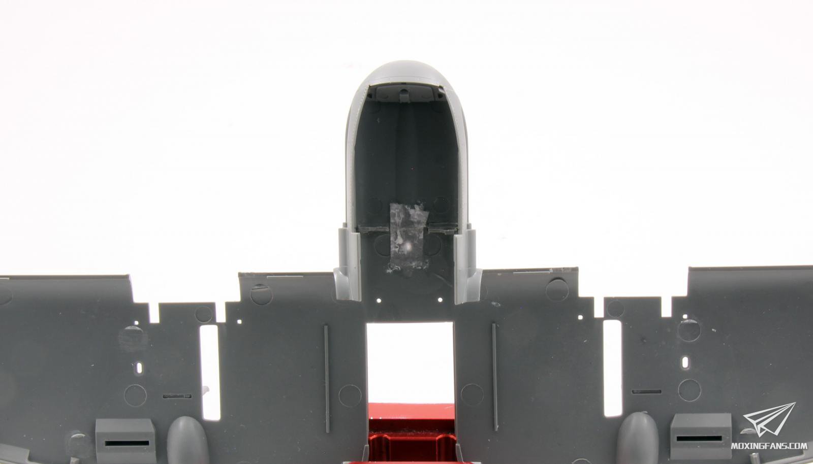 机头部分分件比较多,造型也很复杂,组合度略差,需要细心假组对位,甚至修补打磨。 机头内侧用502粘硬卡纸增加强度。