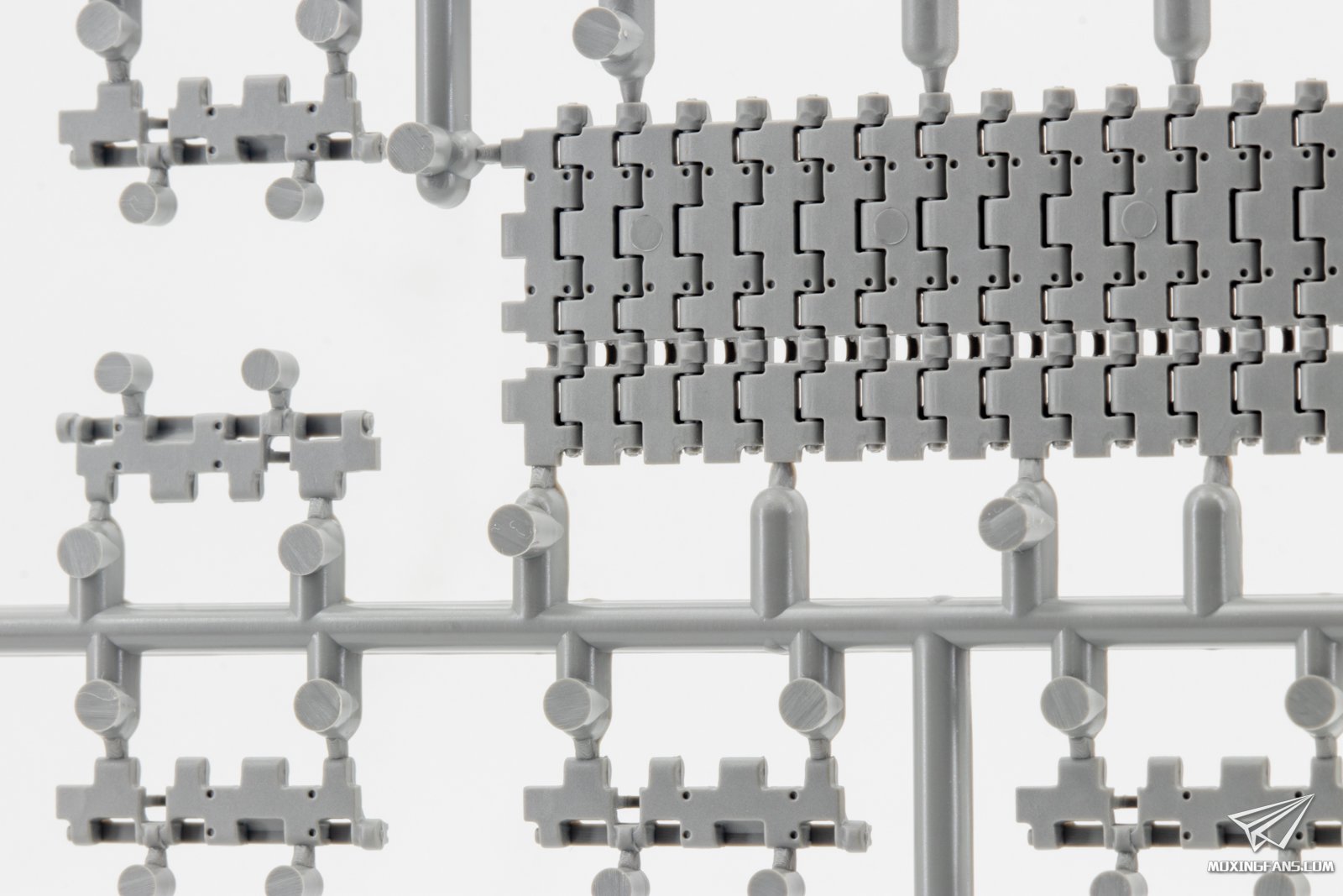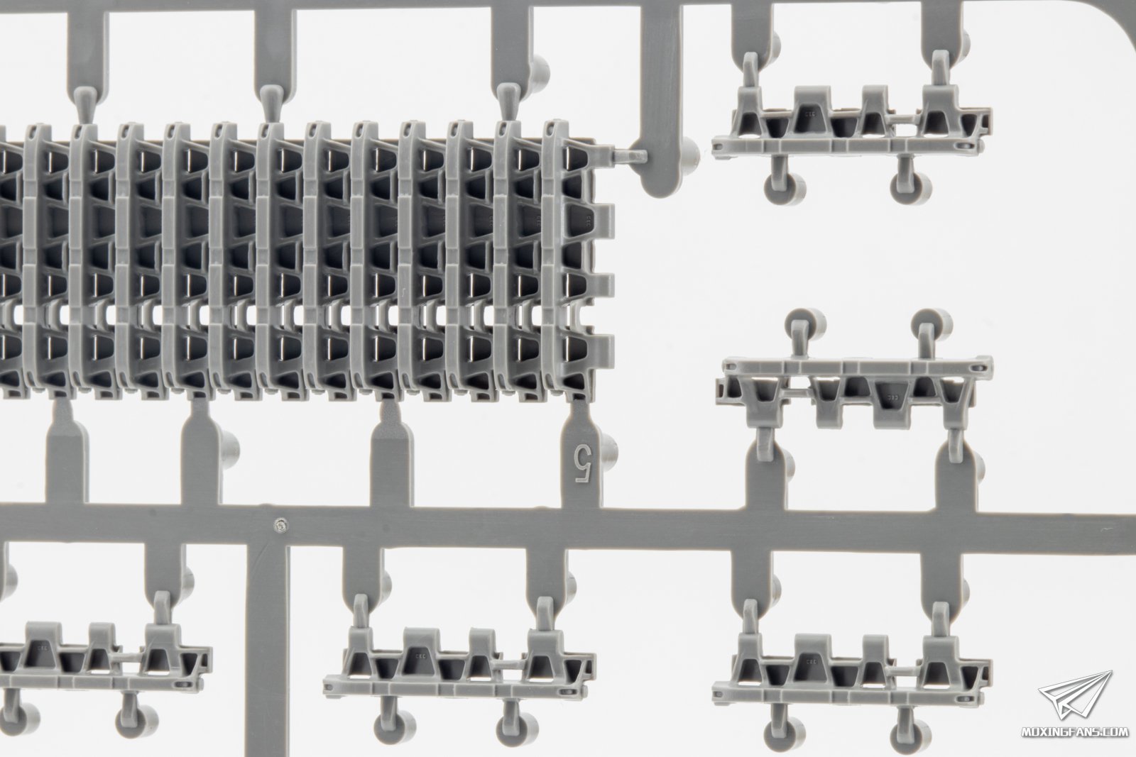 ▼ 履带方面依旧是那套半拼接,这次除了量产的左侧履带以外还提供了右侧的履带,诱导齿同样为单独粘接,有较浅的推出孔。