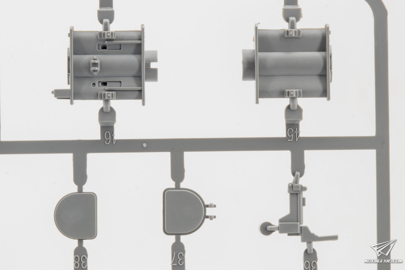 ▼ 指挥塔和火炮的细节。指挥塔采用一体式开出,侧面有合模线,火炮主体采用一体式开模。