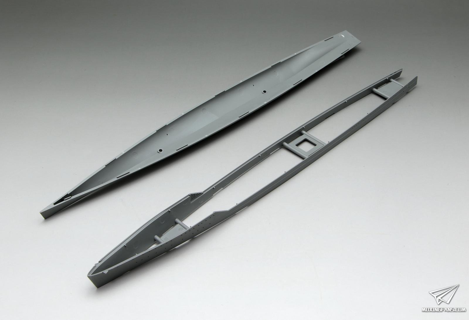 笔者先完成了舰体部分,水线下部分为一体开模,需要按照说明书提前打好孔位,上半部分为左右合体,舰首部分需要无缝处理。展示台打孔2.5毫米(说明书指示),其实有点空,会左右偏摆,2.2毫米应该就差不多了。