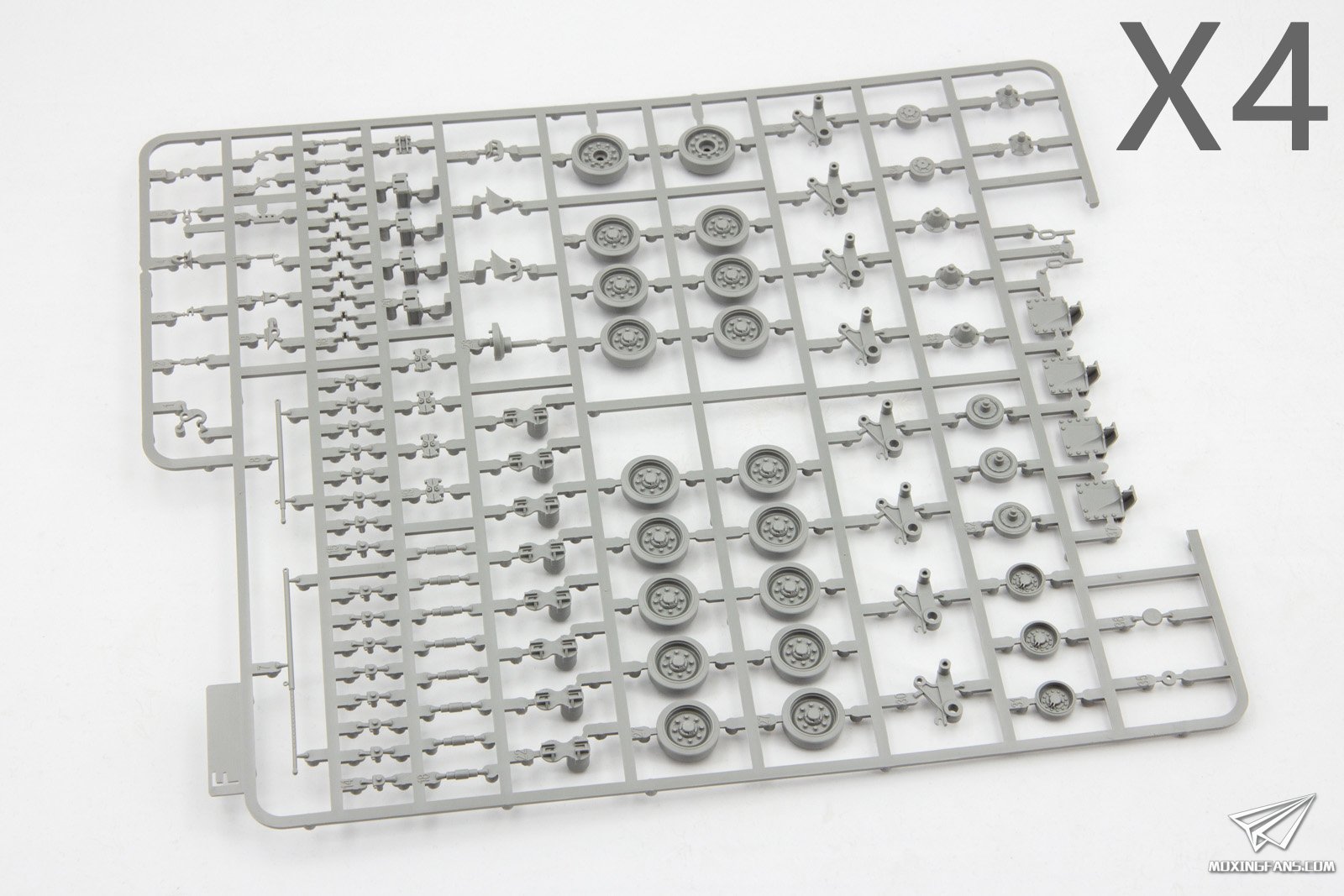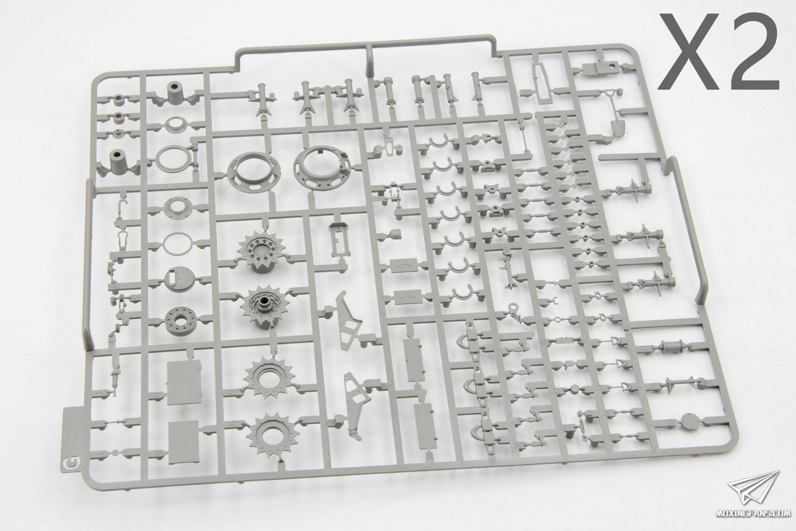 跟T28同期发售的还包括套装中的这款M28A1/A2超重型坦克。M28并没有实车生产,所以这盒套件是纯粹的架空题材。相对于T28,这款M28主要是新开了120mm和155mm的主炮及配套的炮盾,探照灯,油桶和包裹等等。配置方面保持一致,附带铝合金炮管,蚀刻片,活动悬挂和活动履带。