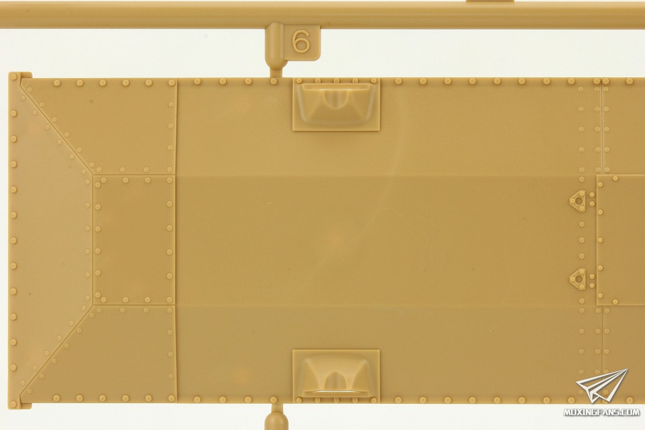 ▼ 首先来看下下车体,可能是出于成本控制考虑,为多片组合的样式,铆钉为圆形,这是铆接车体的一个特点,固定螺栓的六角形表现还不错。