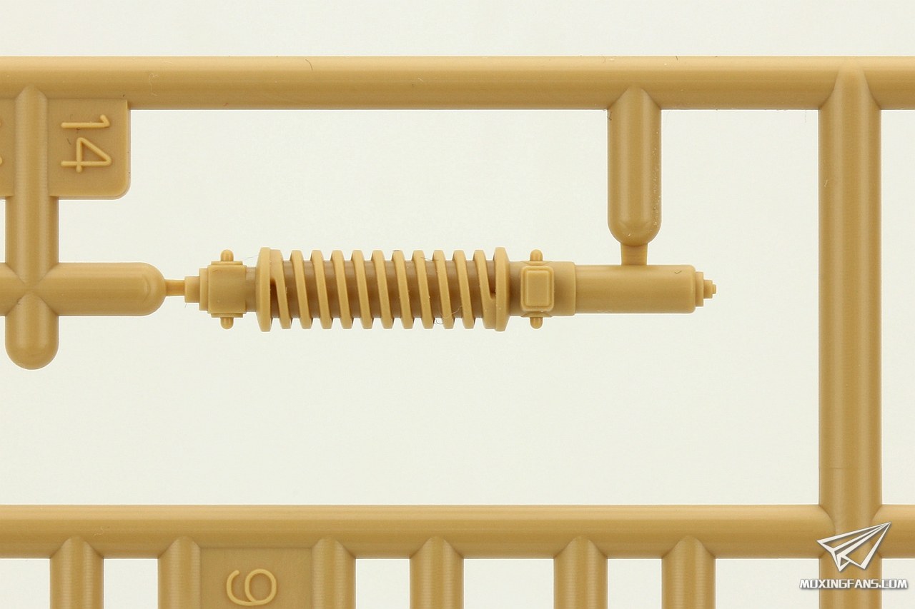 ▼ 悬挂的细节,瓦伦丁的悬挂还是很有意思的,每组由1大2小3个负重轮组成。这里的铆钉基本都是圆形,减震弹簧的细节很锐利。