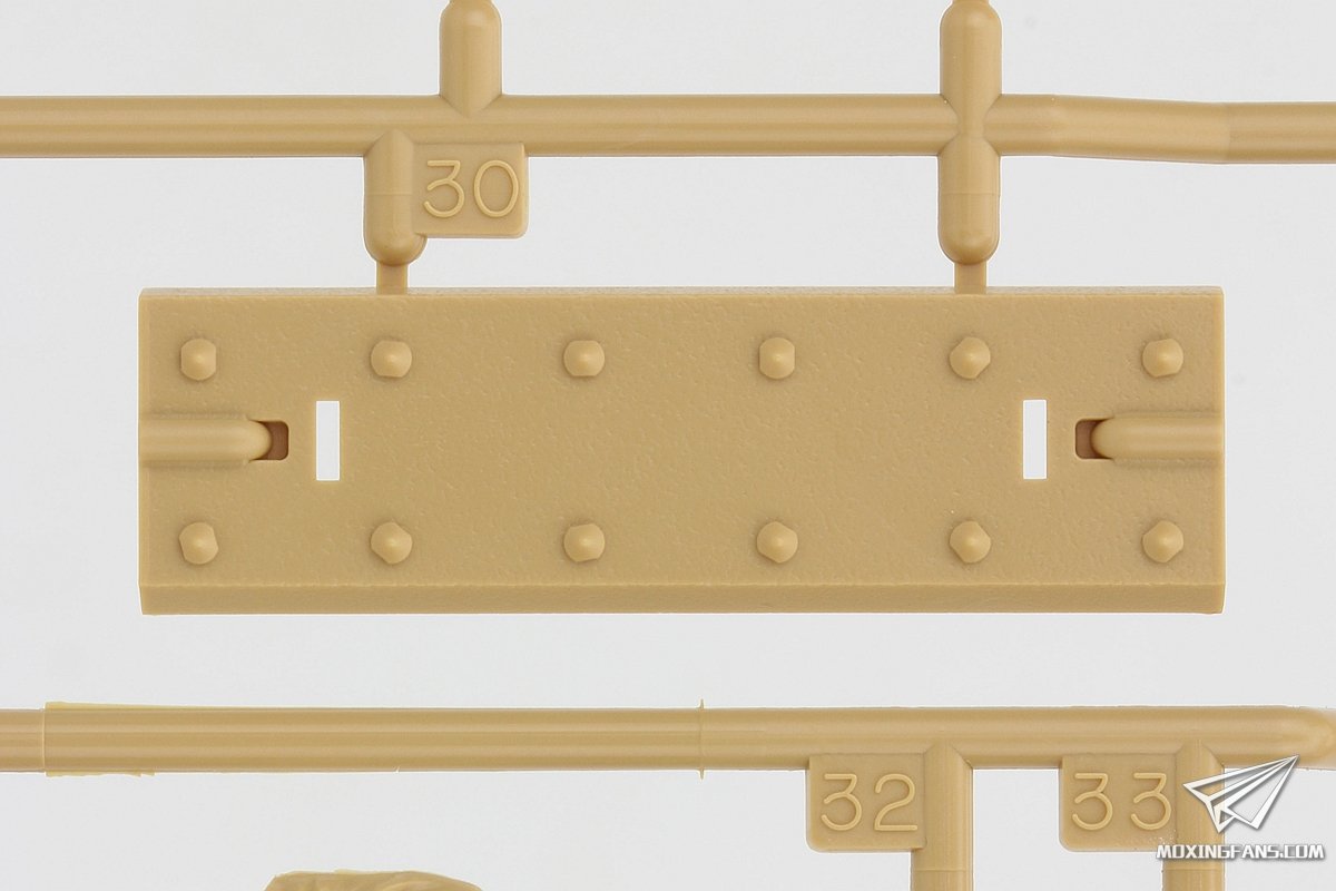 ▼ 车体前部装甲板的细节,请留意轧制感,焊线和螺栓的朝向。另外,红框内的两颗螺栓表现的很不错,与装甲板干涉的地方都进行了模切处理。