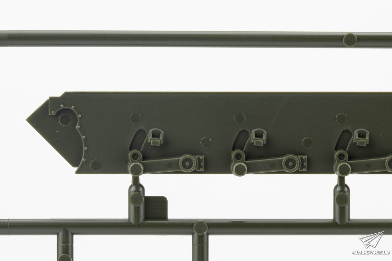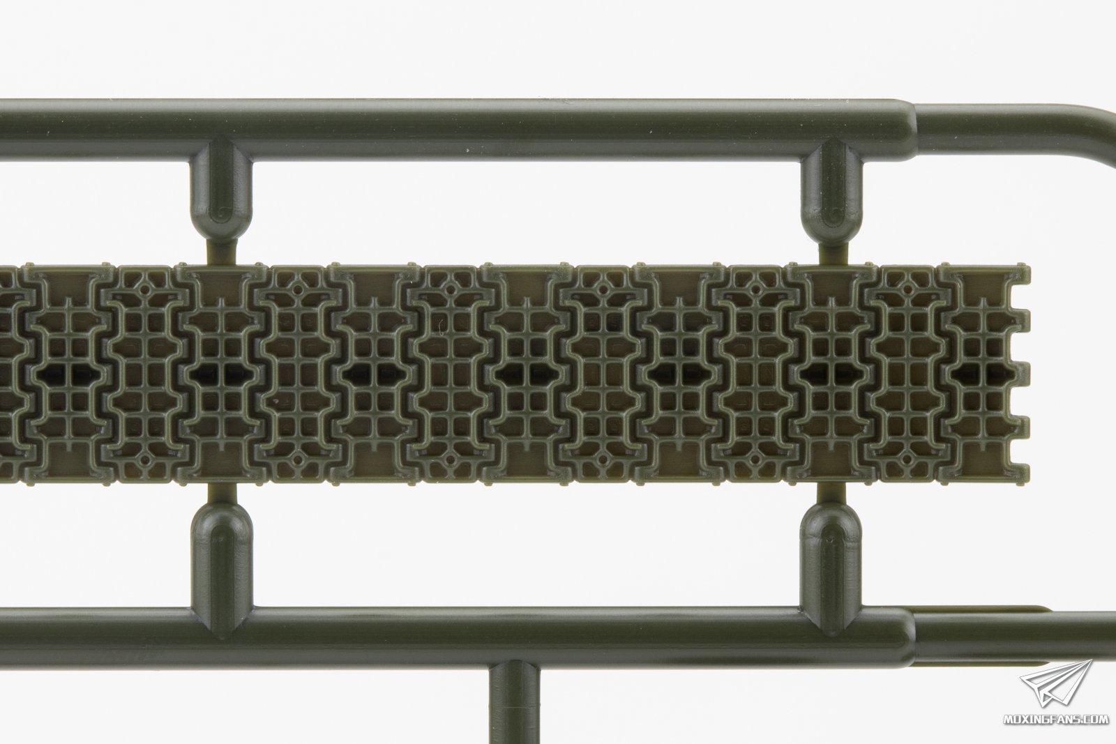 ▼ 不同于1/35比例的T-34,这款1/48比例的履带为半拼接样式,正面有一些突出的推出孔。履带预制了下垂感,这几年做了很多半拼接履带,有一些也做出了预制下垂感,但是做的最舒服效果最好的还是田宫的半拼接。