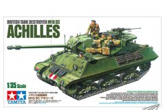 一说起大名鼎鼎的17磅炮,你第一个想到的一定是英国的萤火虫坦克,其实还有一辆车装备的也是这门著名的反坦克炮,那就是阿基里斯坦克歼击车了。阿基里斯坦克歼击车是在美国M10A1的基础上换装英国造的17磅反坦克炮改造而成的,相对于M10火力大大增强,而且灵活性很高,很受前线部队的欢迎。随着英军深入法国内陆,德军的黑豹坦克再也不像是虎式坦克那样偶尔遇到,而是成批成批地出现,17磅炮能够直接穿透黑豹坦克车体的正面装甲,成为欧洲西北部和意大利作战的英国坦克歼击车部队的主要力量。 ▼ 2016年田宫推出了M10之后,在2019年推出了这款阿基里斯。相对于前作,这款新品新开了炮塔和火炮部分,配套的兵人也是全新开模,履带依旧为软胶履带。