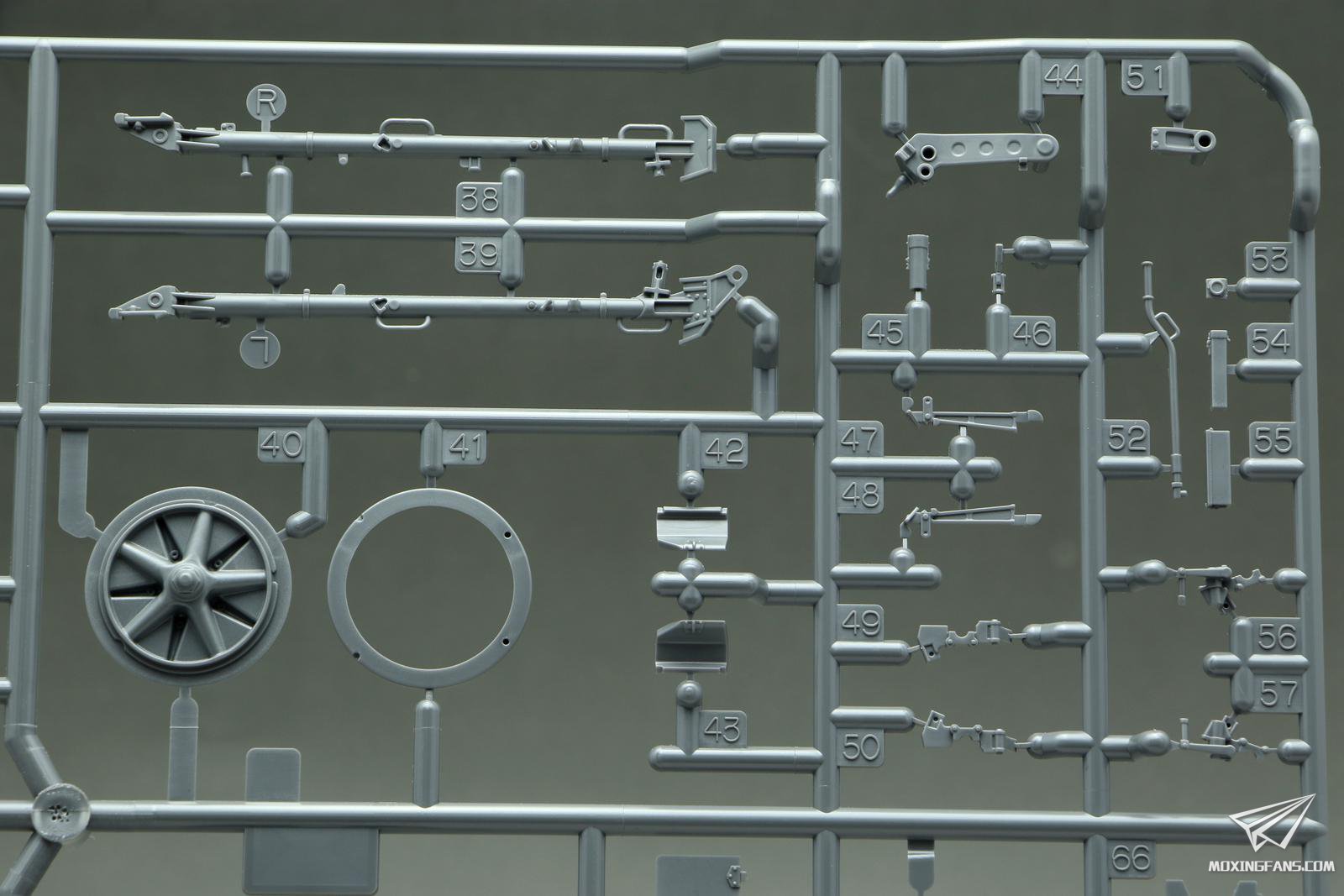 零件不多,一共有四板,还有四个胶套,没有水贴和蚀刻片。塑料为深灰色,兵人板为浅灰色。