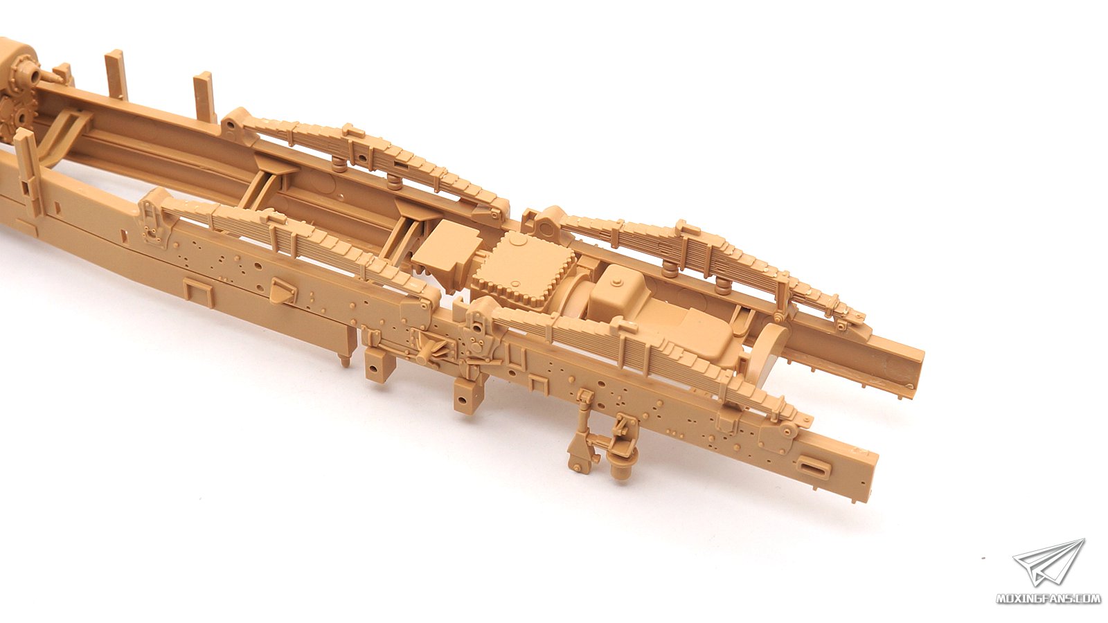 底盘大梁组装之后给人感觉四平八稳。减震钢片的合模线需要处理。有发动机底壳的零件,但是并没有给出完整的发动机,算是有点遗憾。