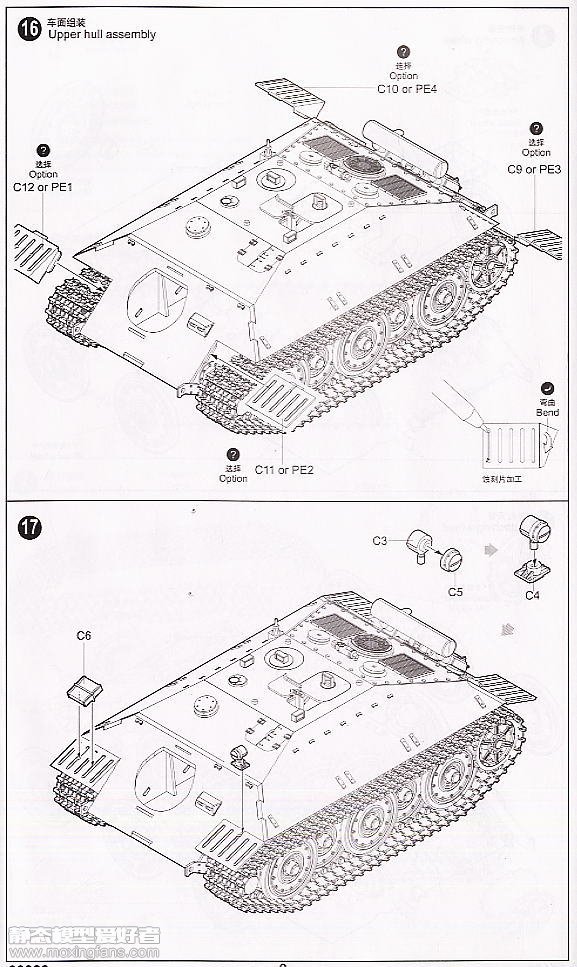 小号手的这款E-25相对于E-10还是有些新意的,战斗室顶部提供了2种型号可选,发动机后部的那块装甲板也是提供了2种型号可选,可以做成E-25A和E-25B两种型号。板件素质依旧是小号手老货的一贯风格,一些应有的细节都有所表现,像是钢板的切割痕,焊线,铆钉和铸造感等等,但是基本都是浅尝辄止,除了炮盾的铸造感不错以外,切割痕和焊缝都有些假,铆钉也是圆圆肉肉的很可爱,侧面基本是光板一块。配置方面小号手提供了一张和蚀刻片,使用在挡泥板和防爆网的位置,履带有橡胶履带和拼接履带可选,橡胶履带细节较差,拼接履带的毛刺和推出孔喜人。 不管如何,得益于E-25在WOT中的优异表现,喜欢这辆小车的模友相信也不在少数,本来的价格在在115左右,如果能降到80+的话还是很有吸引力的。 板件图和说明书如下(部分来自HOBBY SEARCH):