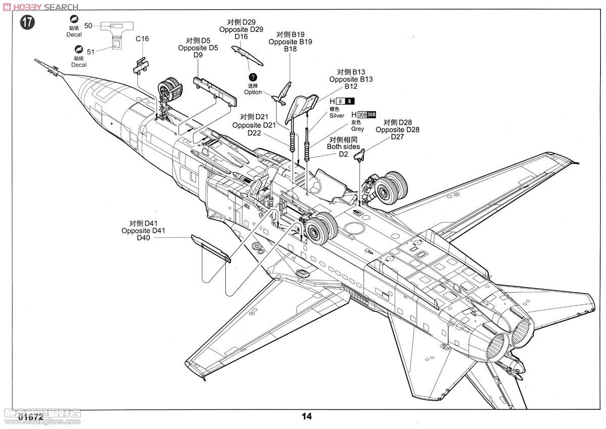 Su-24是苏霍依设计局研制的一款战术轰炸机,它能够执行全天候低空突防攻击任务,北约组织代号为“击剑手”。该机为双座两侧进气常规布局并装有一对可变后掠角的主翼,1971年12月31日首次试飞。整个机型总计产量在1400架以上,主要装备苏联本国的空军和海军航空兵等单位。其外销型号使用国家有阿塞拜疆,阿尔及利亚,哈萨克斯坦,利比亚,叙利亚和乌克兰等国。 Su-24MR是Su-24家族的战术侦察衍生型,其代号为“击剑手-E”。该机拆除了所有用于攻击任务的设备,仅保留了地形跟踪雷达等。与此同时,Aist-M照相机,RDS-BO机载侧视雷达等用于侦察任务的一系列新设备被安装到了飞机上。 小号手的这盒SU-24MR是今年6月份推出的,国外铺货较早,国内也只是上货不久。鉴于近期SU-24题材的火爆,小号手的这盒模型也借机火了一把。 就板件本身来看,用“看上去无限美”这句话来形容并不过分,板件犀利,刻线深度和宽度都算适中,密密麻麻的铆钉都给人一种细节满满的感觉,仪表盘的细节不错,透明件质量很好,导弹的量给的非常足,2大张水贴纸诚意十足,从哪个方面看都是不错的,再加一点蚀刻片就完美了。然而,如果考证起来问题就来了,洋大人们指出:发动机进气道与真机细节不同,AFA ap-402m全景相机和AFA A-100相机部分细节缺失,前起落架舱有错误。。。,原文如下: Firstly, the overall shape and arrangement of parts appears to match photographs and plans of the real thing fairly well. The area between the jet exhausts, which was too wide on their 1:48 scale kit (just like the Streem kit) looks spot on this time around. A separate part for the cockpit and nose is provided, and it appears to be accurate for the MR variant. The underside of the nose looks a little shallow, in the sense that the upward curve begins too far back and therefore looks very slightly less bulbous than it should be, but if indeed there is any error here, it is very subtle. The engine air intakes look very slightly different to the real thing as well. They should sweep forward slightly from bottom to top, but instead they appear to be at a 90 degree angle to the fuselage. As before, any error here is very small. The only mistake that I would consider to be a serious is the omission of parts for the AFA AP-402M panoramic camera nose (just behind the nose gear bay) and the AFA A-100 oblique camera in the floor of the port engine air intake. The instructions advise you to fit the part for the Kayra laser rangefinder instead, but this part should be used only for the Su-24M. 组合度未知,小零件飞边比较煞风景,还是小号手惯有的一些问题。 板件图和说明书如下(部分来自HOBBY SEARCH):