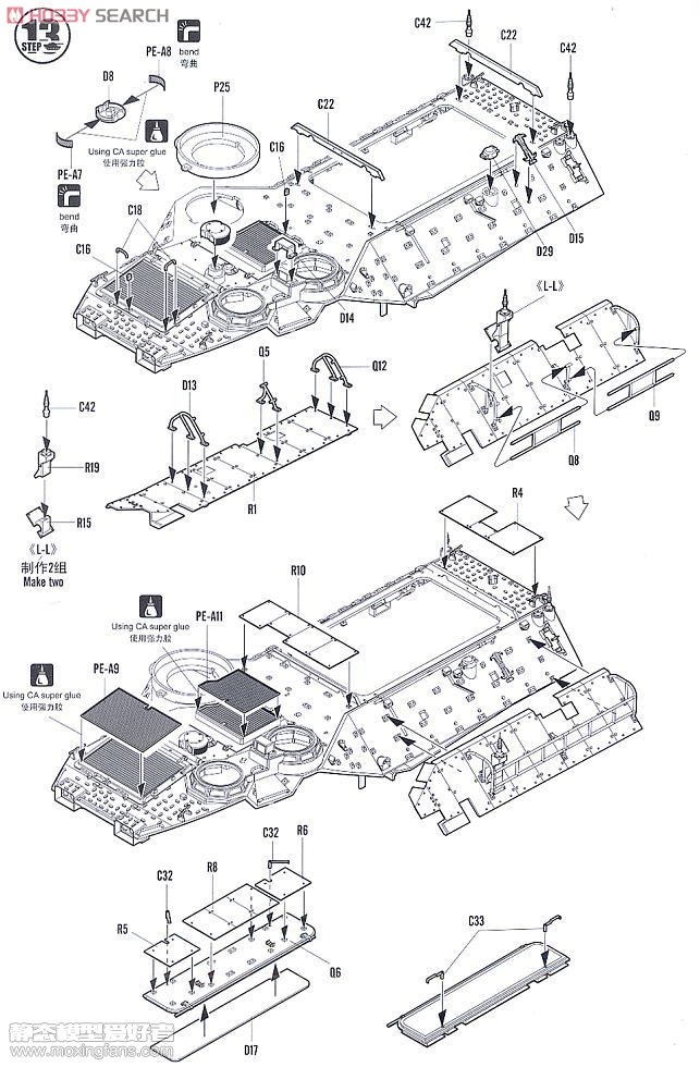 【HOBBYBOSS 82416】1/35 美国AAVP-7A1 RAM/RS改进型两栖装甲车(带附加装甲)板件图和说