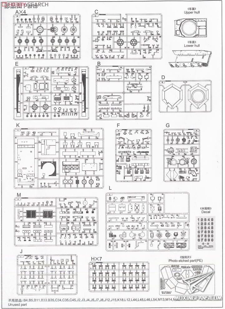 【HOBBYBOSS 83805】1/35 德国一号坦克F型(VK.1801)轻型坦克后期型板件图和说明书