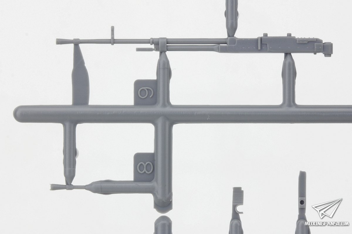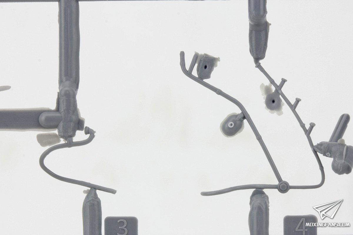 ▼ 烟雾弹发射器有金属件和射出件两种可选,金属件无疑是更好的选择,而且能够节省大量的打磨修整时间。对应的管线是通过射出件来表现的,水口处的飞边现象比较严重,零件上的飞边 并不多。