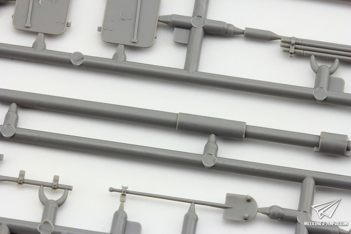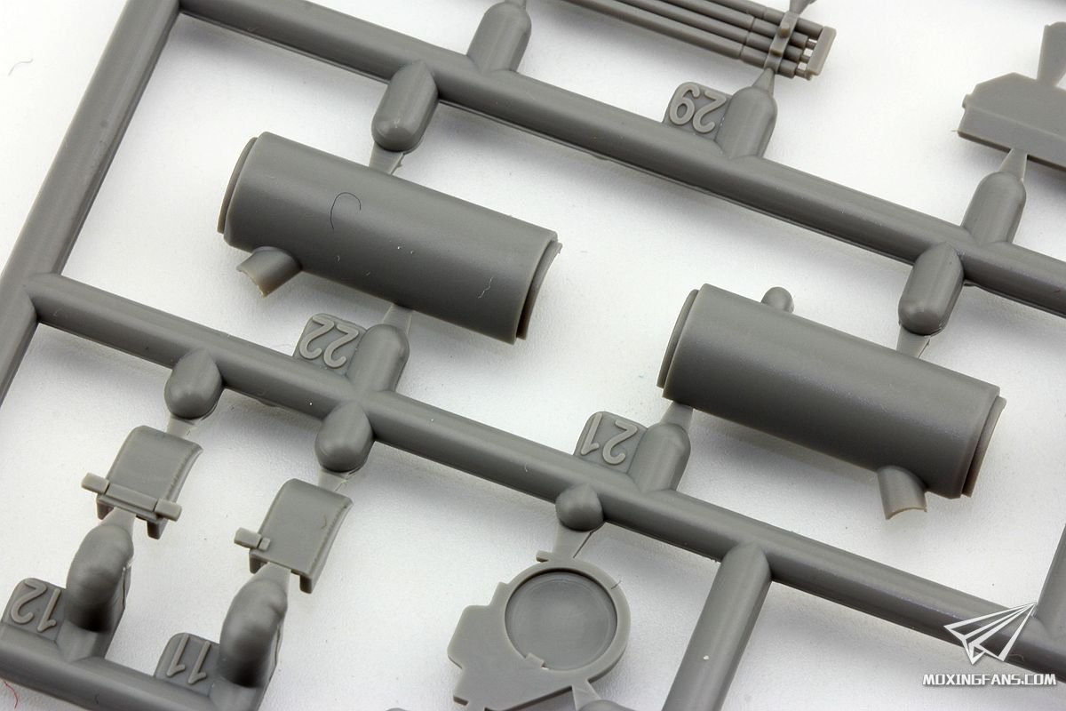 ▼ 套件给出了2种制退器可选,都开出了紧固螺栓的细节,并列机枪开出了枪口细节,火炮根部的缓冲机构为一体式开模。