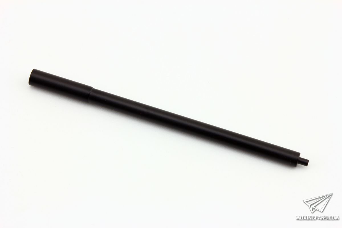 ▼ 炮塔正面装甲为单独开模。金属炮管为黑色氧化着色工艺,看上去逼格满满,原则上来说可以省掉一层金属底漆,而且牢固度也不错,小编用指甲没刮掉黑色的氧化层。套件还给出了L43和L48两种塑料炮管,都是一体式开模,套件还给出了部分炮尾的细节。