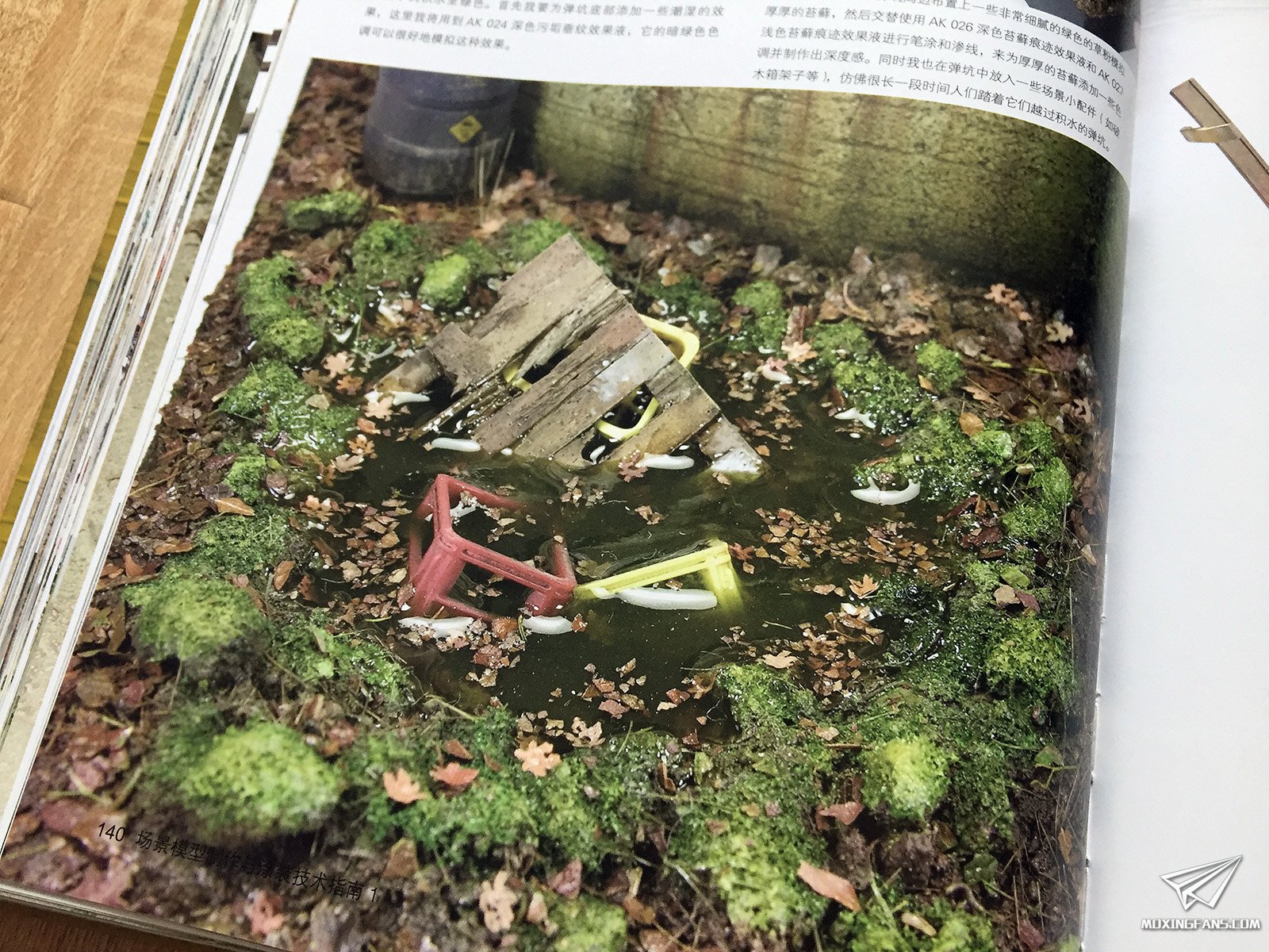 第二部分前半部,讲述场景地貎的制作与涂色,包含自制与各种材料的搭配使用,场景里的建筑物,在这本书里没有写到,被放在「制作与涂装技术指南2」里,所以请有需要的另行购买续集呀!