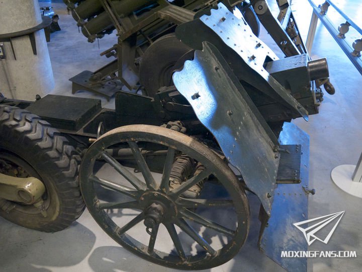 这种步兵炮最有特色的地方就是它的炮闩,采用火炮上极少用的炮尾起落式炮闩。炮尾右侧有个手柄,向后拉手柄,炮尾可以抬起,类似某些猎枪装弹的动作。
