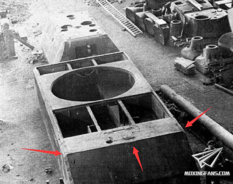 2.车尾 1号车尾有巨大的矩形焊接痕,在搭载水泥炮塔试验中,才安装了车尾下方牵引环