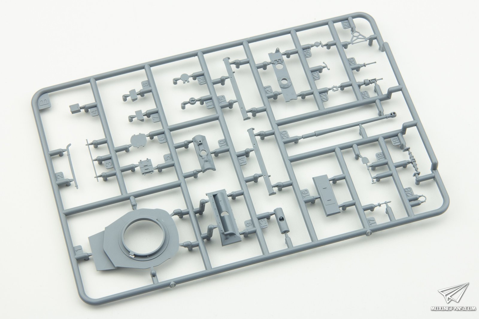 在推出了惊艳的1/72比例彗星MK.1A之后,黄蜂模型顺势推出了 这盒彗星MK.1B,两者的区别并不大,前者为二战型号,而后者则是战后型号。跟MK.1A型相比,MK.1B主要更换了车尾鱼尾式样的排气管;炮塔两侧装有烟雾弹发射器;以及安装了新型惰轮等。 ▼ 从板件方面来看,这次的MK.1B主要板件与MK.1A相同,主要是新增了树脂炮盾防雨布,水贴和钢缆等,同样配有金属炮管。