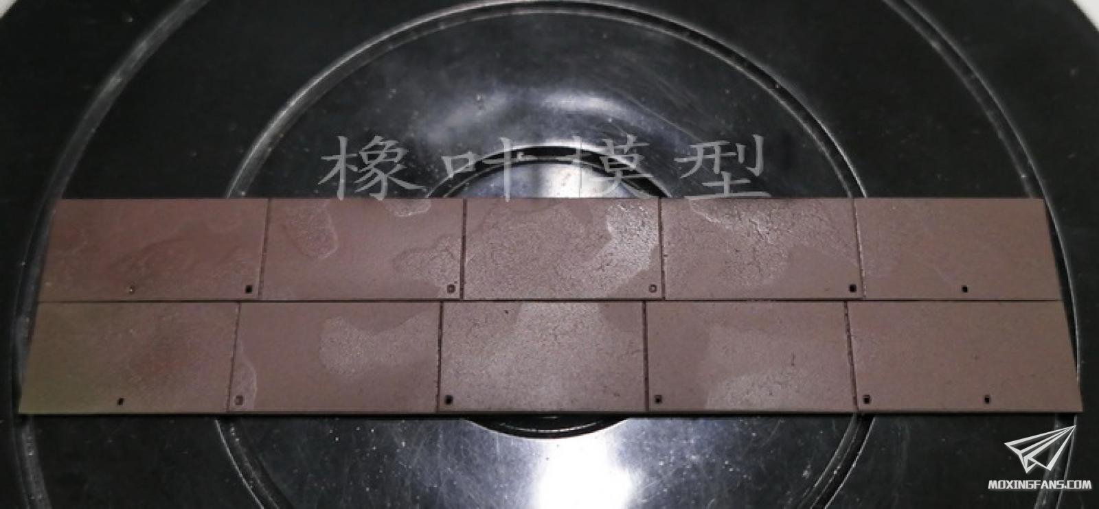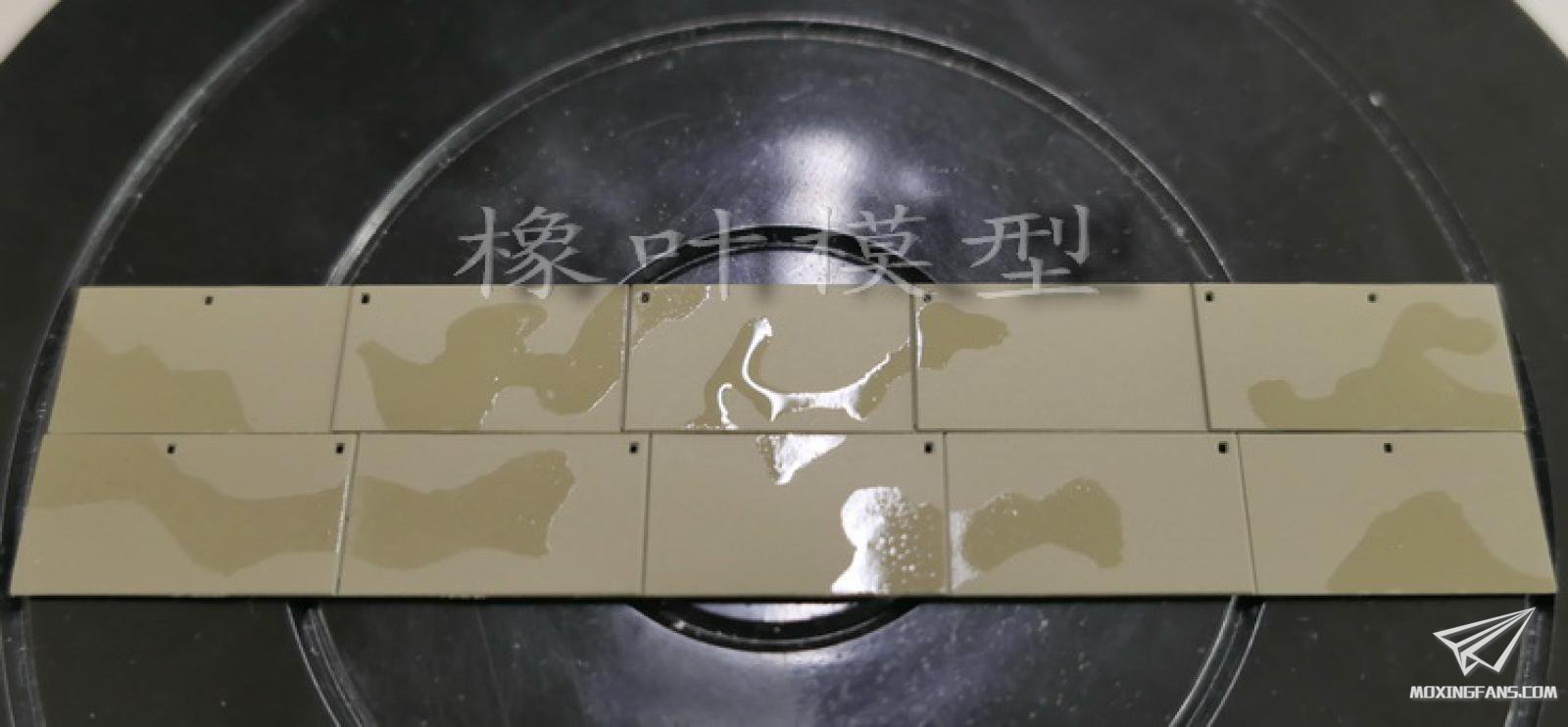 用遮盖法喷涂二战德国标准三色迷彩效果 可使用橡叶模型遮盖液,深、浅油污色,光泽添加剂进行遮盖