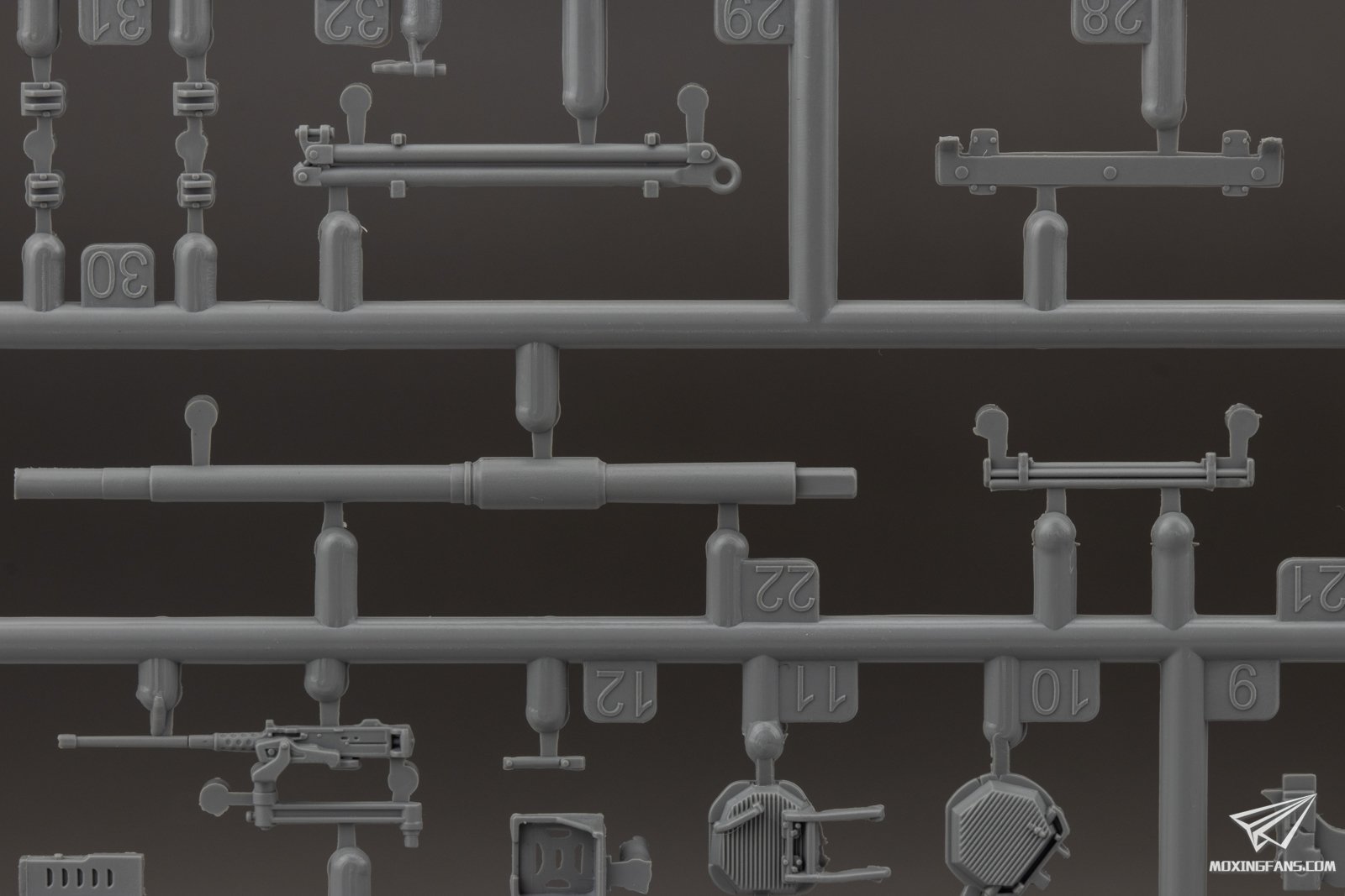 ▼ 车体其他零件和火炮的细节。火炮和机枪已经开出了炮口,但是有些许小飞边需要处理。