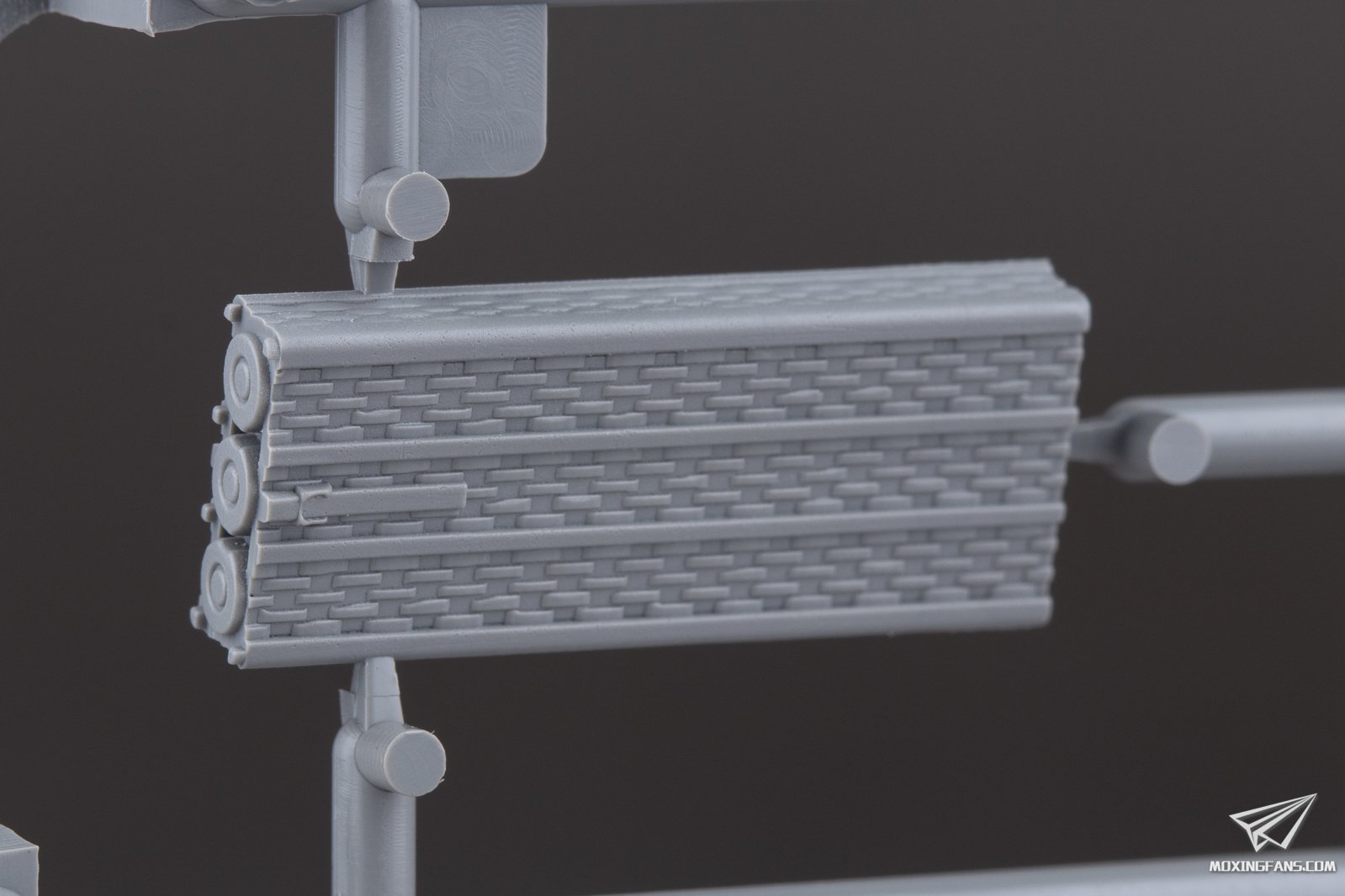 ▼ 套件附带了炮弹和弹药箱,木质弹箱需要多面拼合,表面开出了木纹细节,藤制弹箱则是一体式开模,在一侧直接开出了炮弹底部细节,可以制作成打开状态。