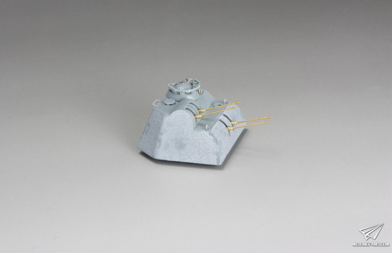 炮塔的零件不多,观察窗护框有轻微形变,粘接金属主炮的时候要注意炮间的平行距离保持一致。
