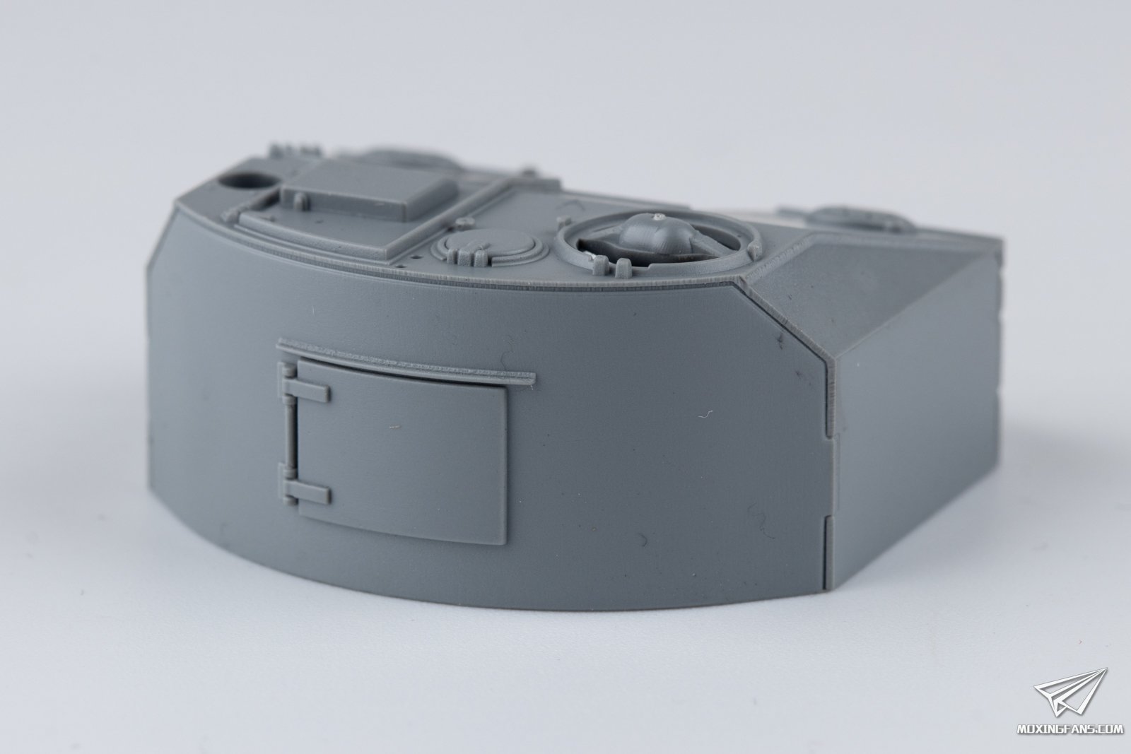 ▼ 首先我们来看新开模的部分。炮塔主体为一体式开模,一体化程度较高,表面开出了丰富的焊线和切割痕细节,即使放在1/35比例在细节方面的表现也是不错的。