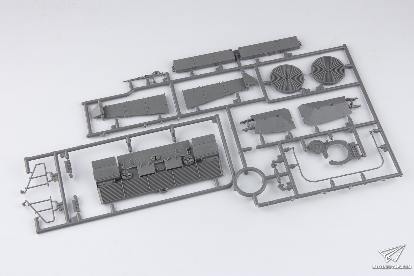 AEV-3科迪亚克棕熊装甲工程车由莱茵金属陆地系统公司和RUAG陆地系统公司于2002年研制,基于豹2坦克底盘开发而成。这款工程车配有三节式节臂液压挖掘机,车首安装有角度可调的清障铲,而且还可以选装扫雷犁,万能抓斗,混凝土破碎机等装备,可以说是战场上的多面手。 ▼ 纵观目前市面上的豹2底盘模型,题材基本都是豹2A4/A5/A6/A7等主流型号,而由豹2底盘衍生出来的车型却比较少见,厂家们宁可在同一个题材上撞的头破血流也不愿意将目光投入到衍生型号上来。自从2021年6月边境模型预告了这款工程车以后,很多喜欢这个题材的模友就对这款题材表现出了浓厚的兴趣,如今时隔1年半,边境的这颗卫星终于回收,我们来看表现如何。板件为深灰色PS塑料,配有活动悬挂和活动履带,3张蚀刻片,金属钢缆和软管,可制作成德国版或瑞士版。