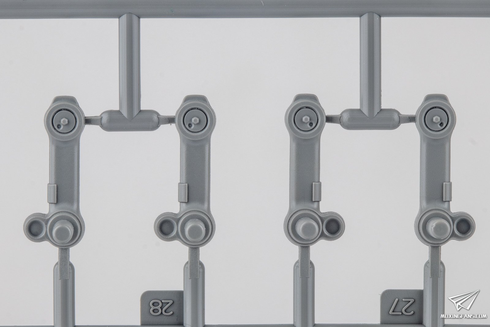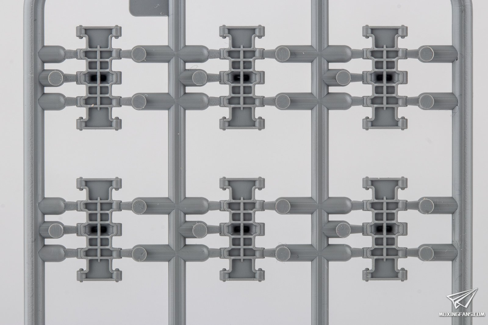 ▼ 行走部分的悬挂,轮子和履带的细节,这部分基本都延续了T-34/76的零件,细节丰富且锐利。负重轮胶圈的细节表现良好,尤其是内侧橡胶层受挤压变形老化的细节非常传神,履带为卡扣式活动履带,正面开出了细小的铸造编号细节,正反面都没有明显推出孔。