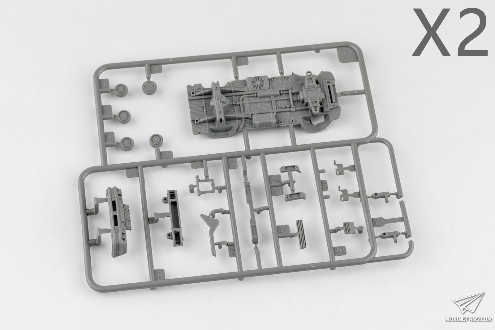 SABRE模型悄无声息的推出了一款2045型越野车,作为90年代的明星车型,2.8T柴油机的澎湃动力,四驱两把锁的越野性能,一经引进就得到了广泛的关注和认可,并且针对我国的使用环境和使用习惯进行了多项改进,推出了多款改型,活跃在各条战线上,在各种视频资料和照片资料中都能看到这款车的身影,很多模友都接触过这款车,从某种角度来说是一个时代的象征。 ▼ 这是一盒1+1套件,包括两辆完整的车辆,提供了蚀刻片和软胶轮胎,比较有意思的是前轮和后轮的连接结构采用的是金属定位销,如果合理用胶可以实现推推乐的效果。