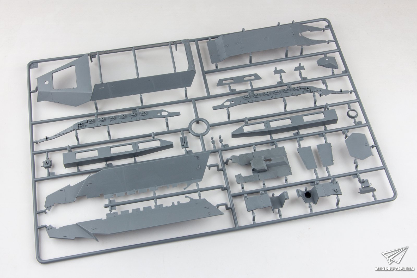 作为半履带大年,今年的Sd.Kfz.251题材非常火爆,各厂家纷纷推出了自家的产品,或者是全新开模,或者是增配再版,让这个波澜不惊的题材再次火热了起来。在众多产品里,雪人的这款全新开模的251D就是比较热门的一款,在众多品牌中,这款套件最先开启预售,却最迟到货,这中间到底经历了什么我们不得而知,但是这长时间的预售期却把大家的胃口都吊起来了,下面我们就来看一下这款迟到的251D表现如何。 ▼ 板件为深灰色PS塑料,附带蚀刻片,活动履带,软胶轮胎,金属示宽棒和几个3D打印的小零件。