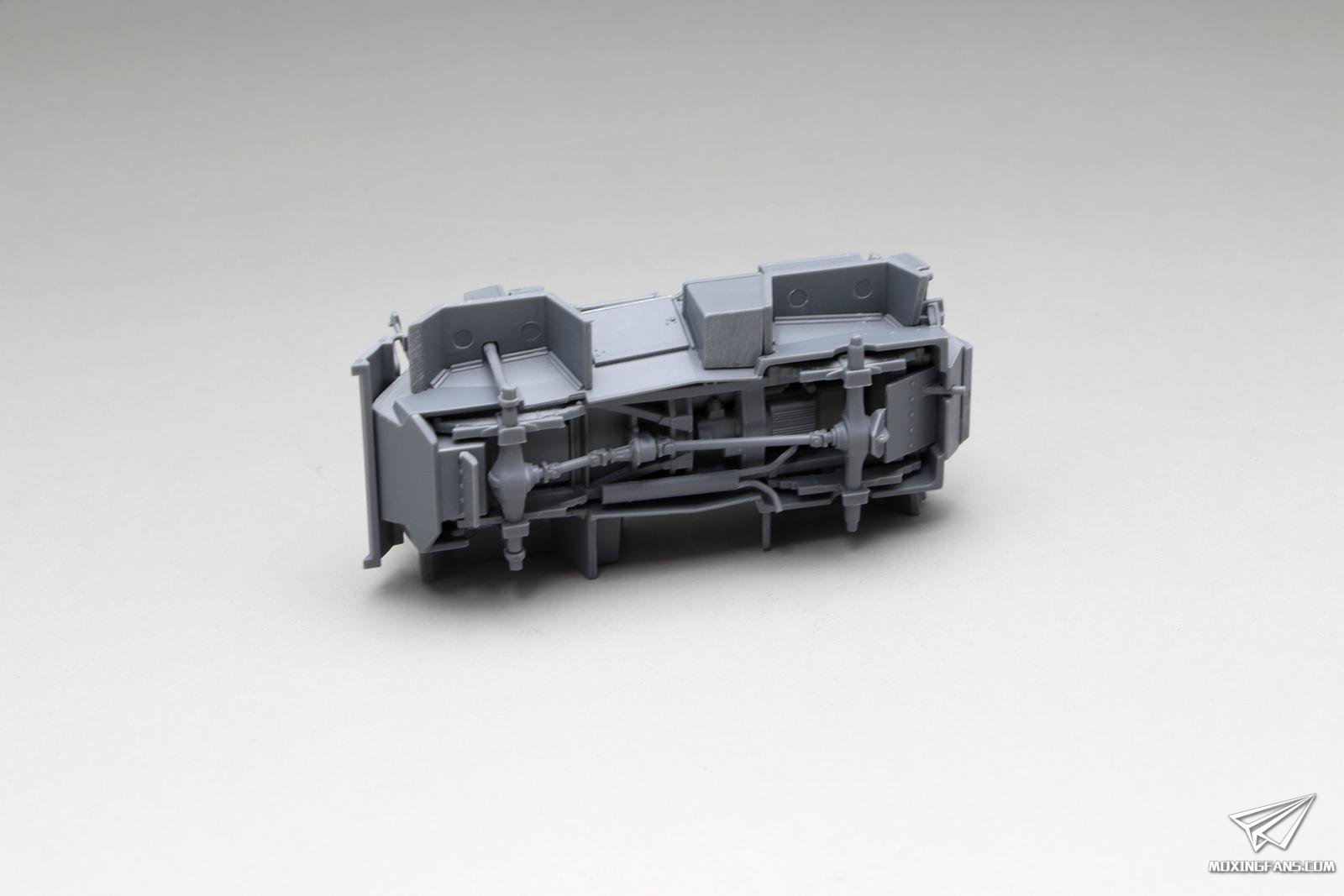 底盘为一体开出,悬挂部分也是一个零件直接粘上去,从细节上来看,有一定细节但也足够表达了,简单而又不简约。