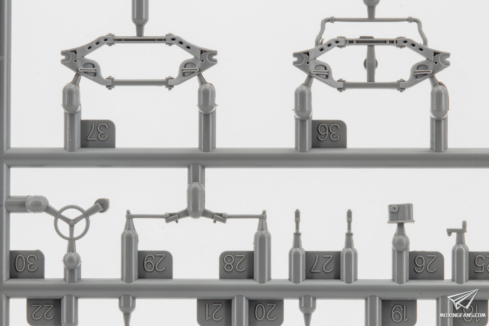 ▼ 大梁,悬挂和其他主要零件的细节,大梁为一体式开模,省去了组合的麻烦。