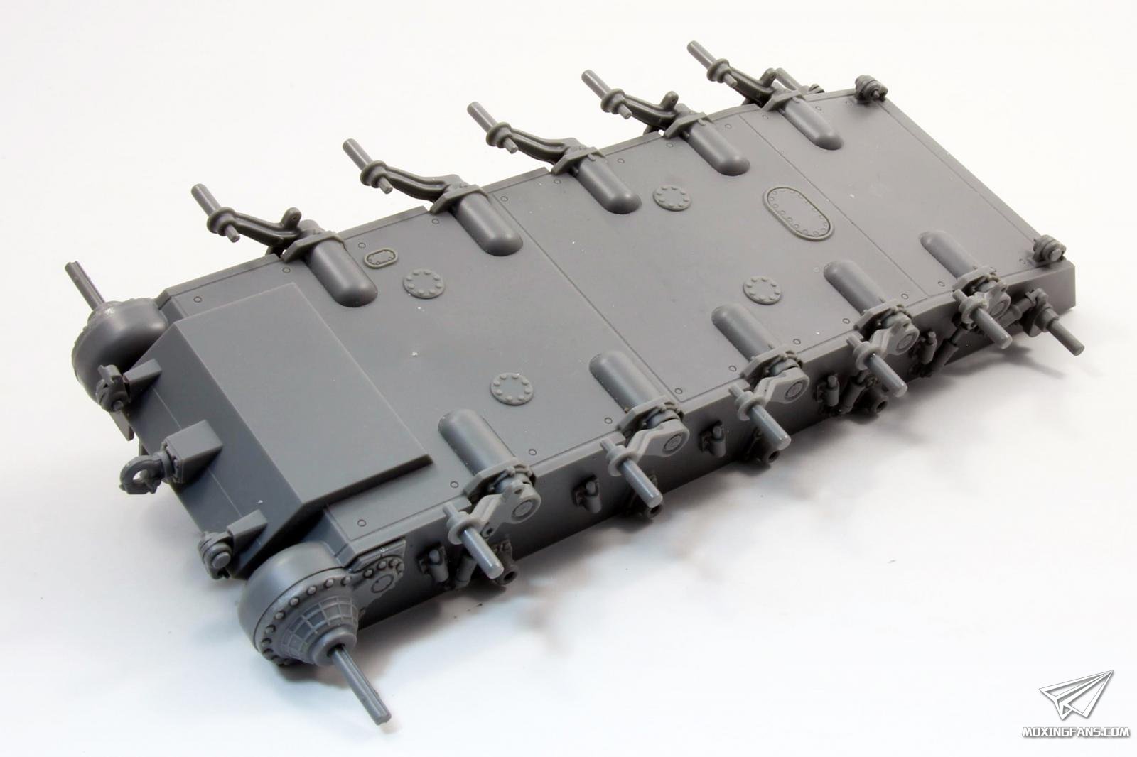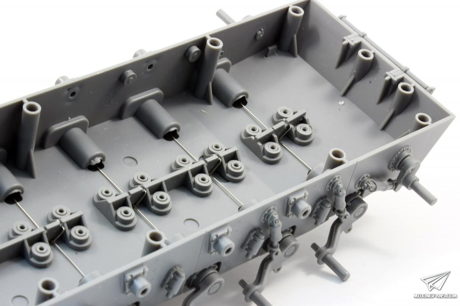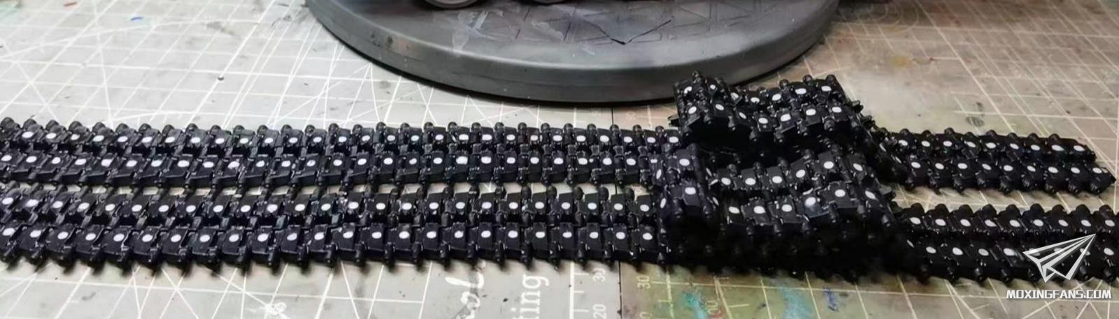 履带部分采用C型卡扣连结,,活动性和组合度都非常不错,组合感不好的地方是每节履带内侧有两处推出孔,是强迫症的话需要填补,成品如果多上一点土的话也不太明显。