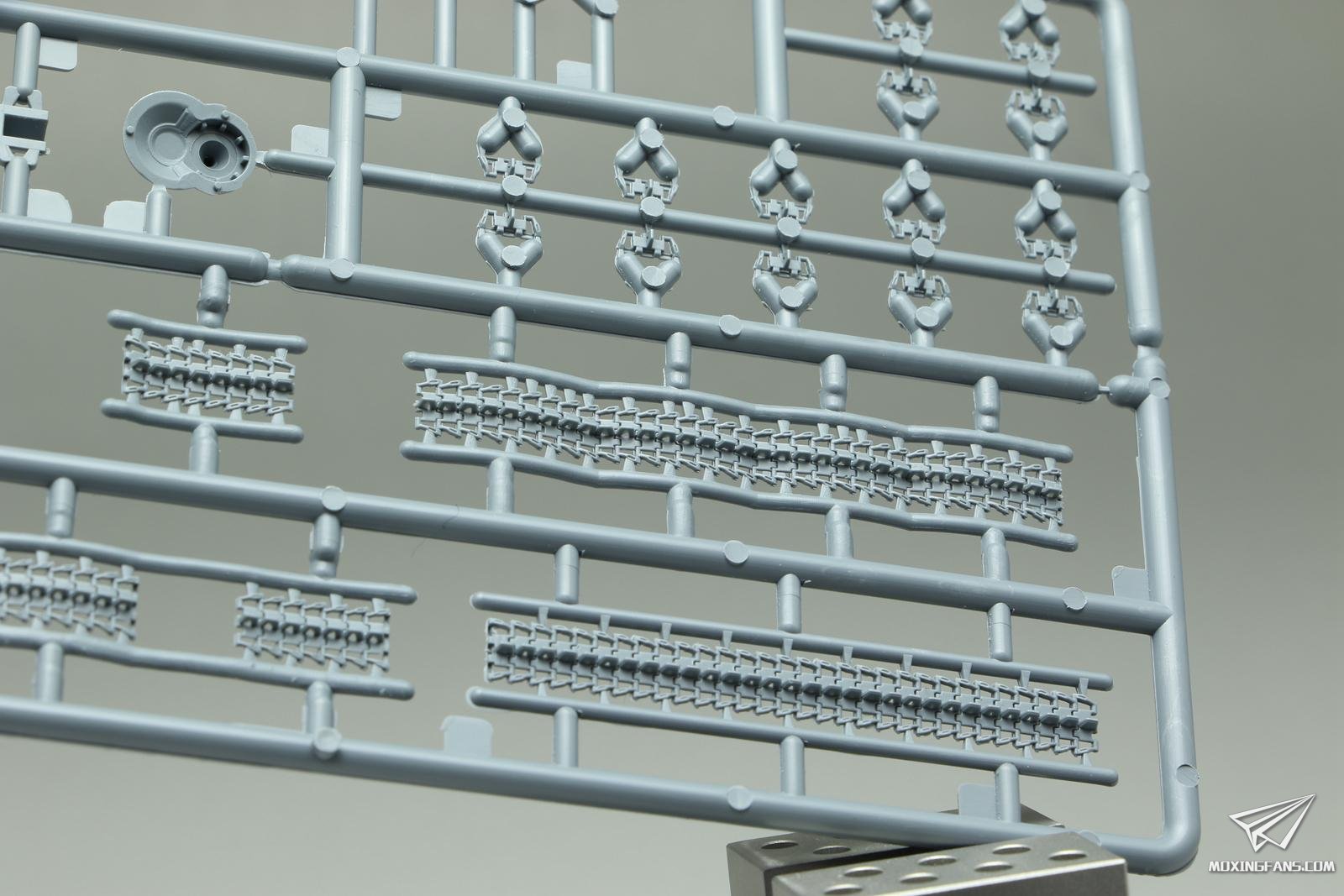 半拼接履带的诱导齿,部分是镂空的,有一部分却不是;开出了重量感的预制效果。
